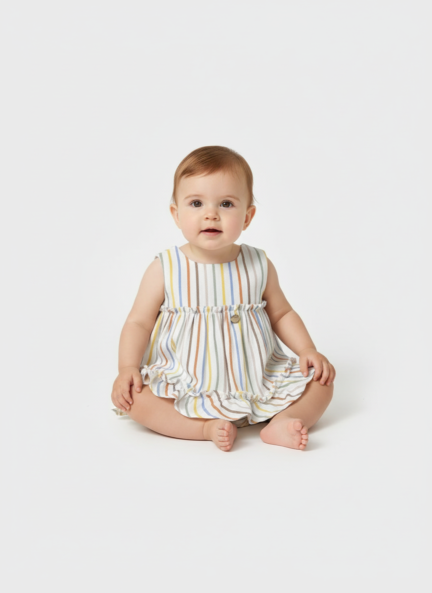 Vestito copri pannolino neonata Mayoral Newborn righe colorate pastello