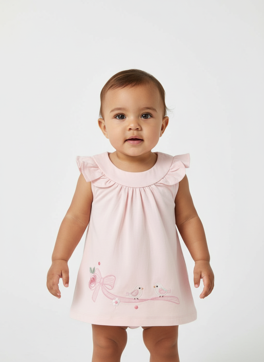 Vestito fresco cotone neonata Mayoral Newborn "uccelino" rosa tulipano