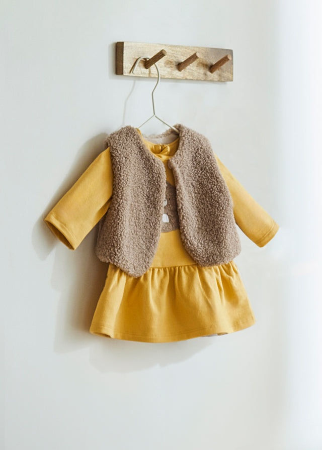 Completo 3 pezzi gilet pellicciotto neonata Mayoral Newborn