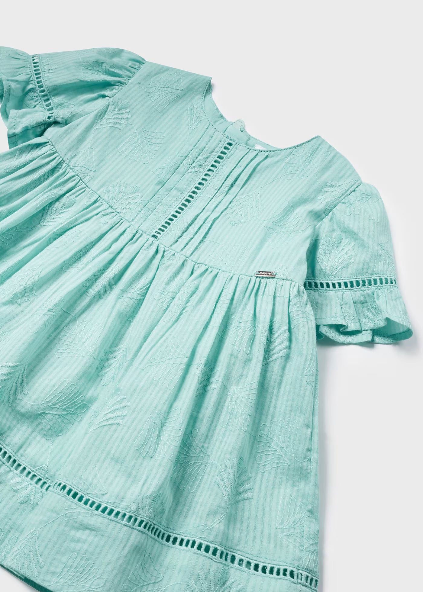 Frisches Baumwollkleid für Babymädchen Mayoral Aqua mit „Island“-Print
