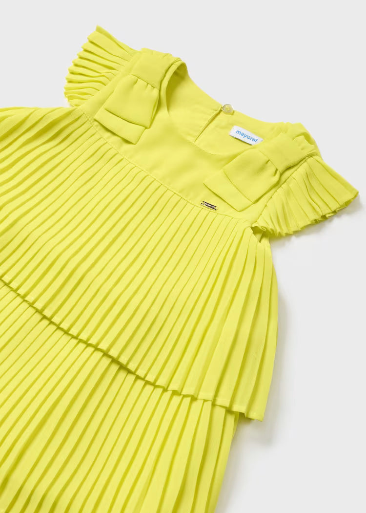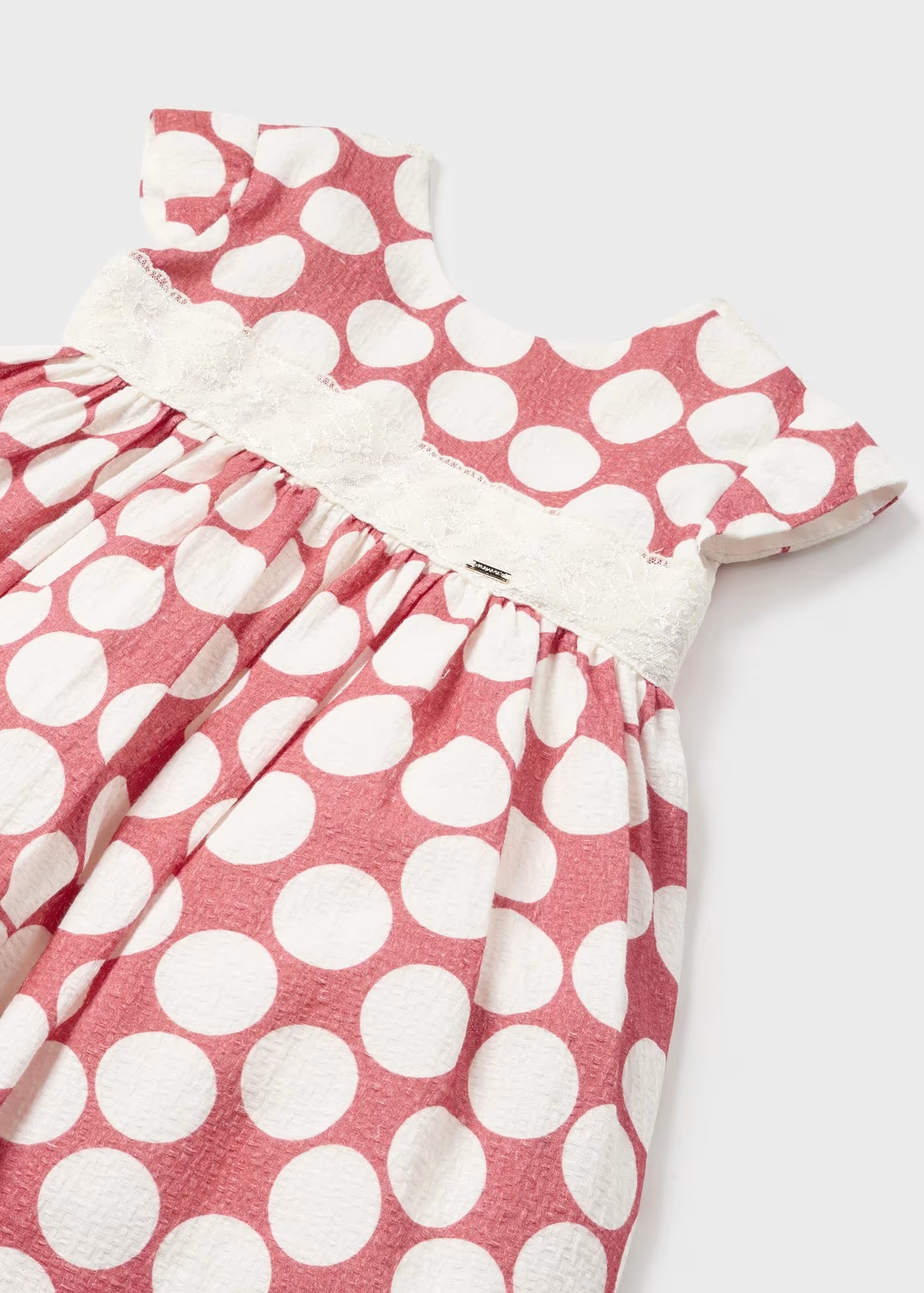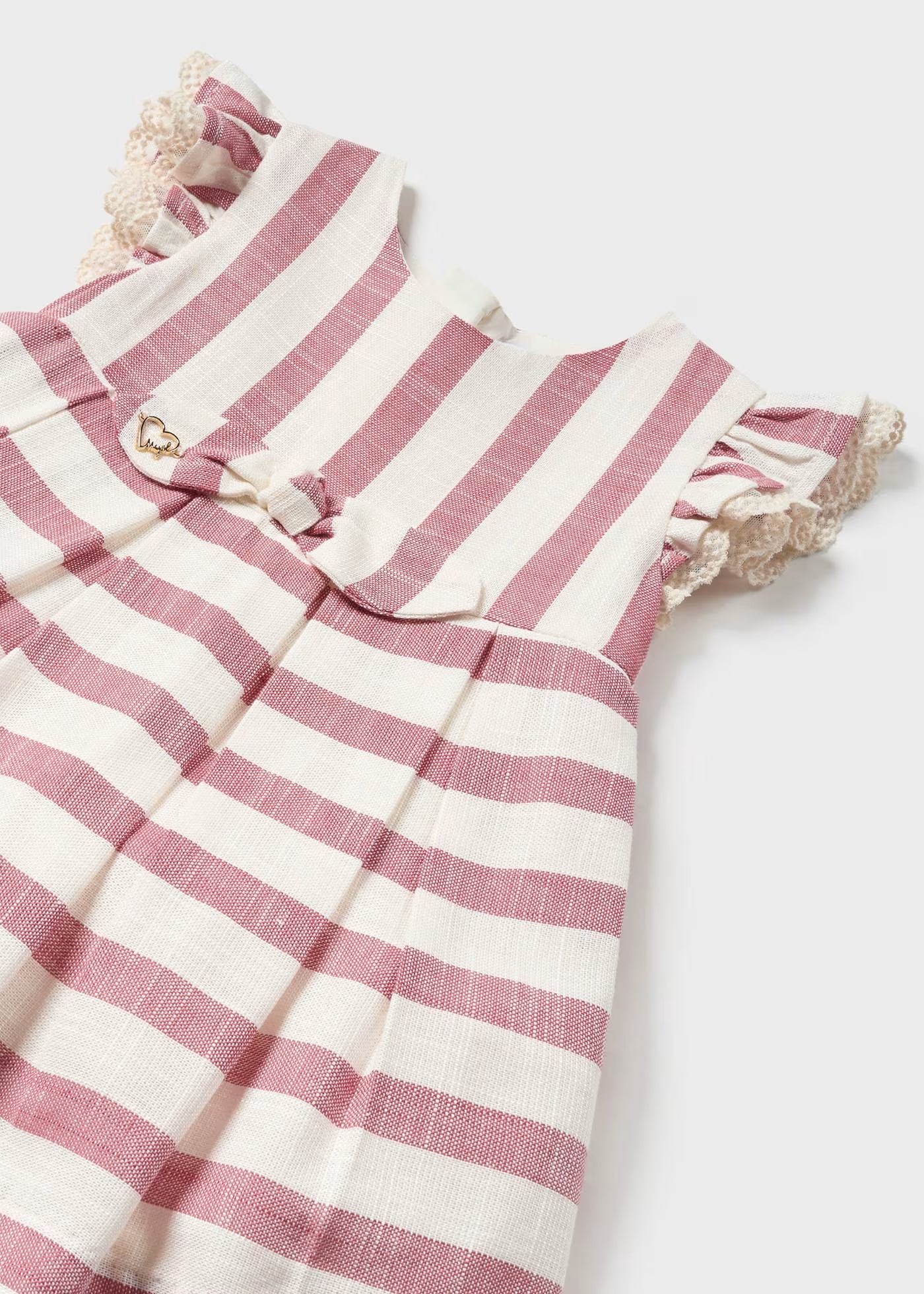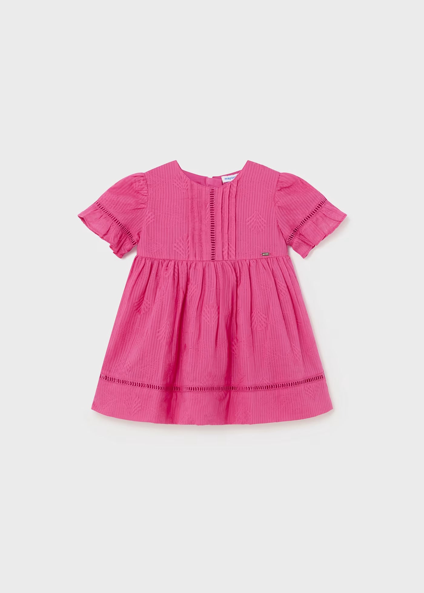Rosafarbenes, plissiertes, gefüttertes Mayoral-Babykleid mit Schleifen