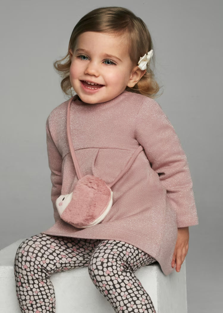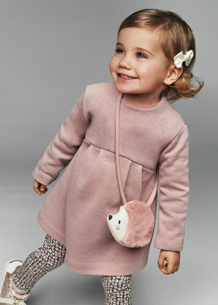 Vestito con borsetta riccio neonata Mayoral Rosa lurex