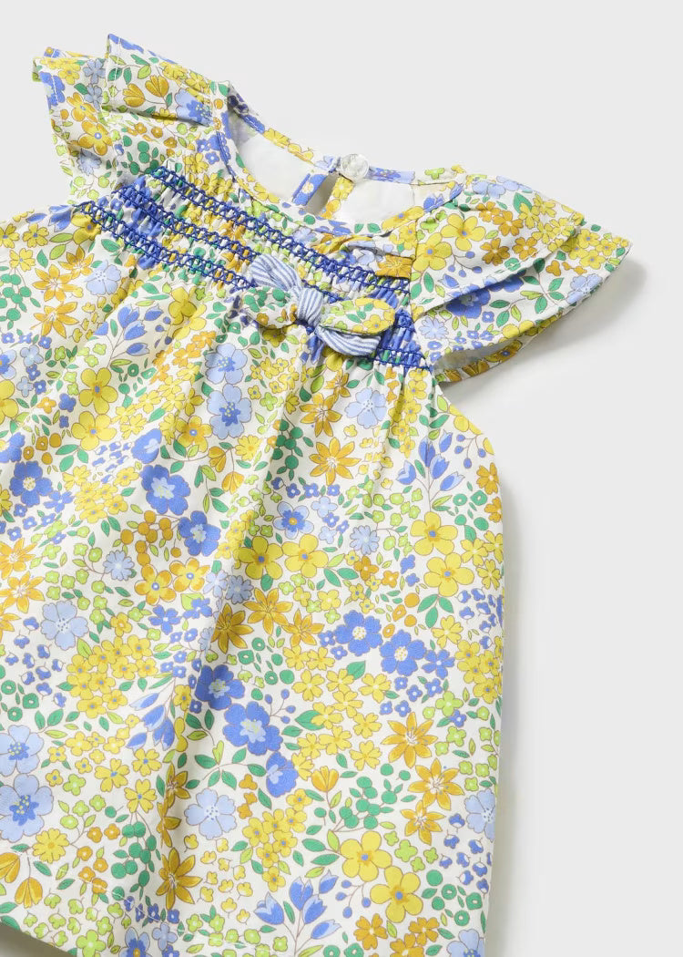 Kleid mit Blumenmuster und Schärpe für die neugeborene Mayoral Delia
