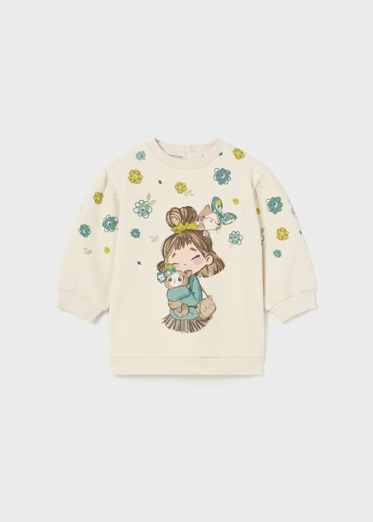 Mayoral Cecio Baby-Mädchen-Maxikleid aus warmer Baumwolle mit Aufdruck