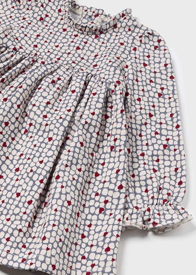 Vestito neonata Mayoral stampato grigio e cuori rossi