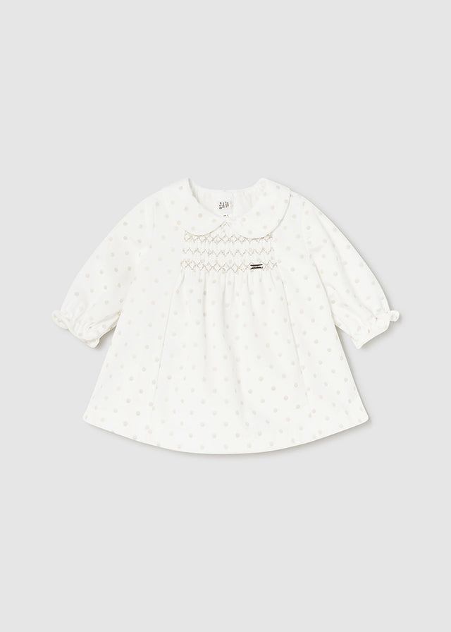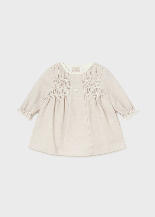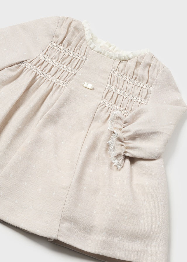 Mayoral Newborn-Kleid aus warmer Baumwolle in Beige mit Tupfenmuster für Babys