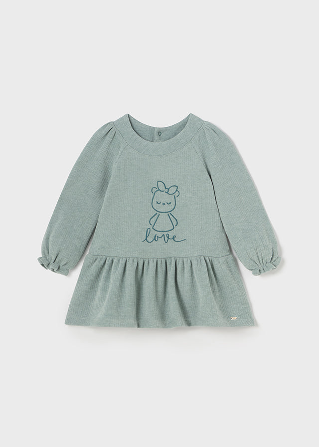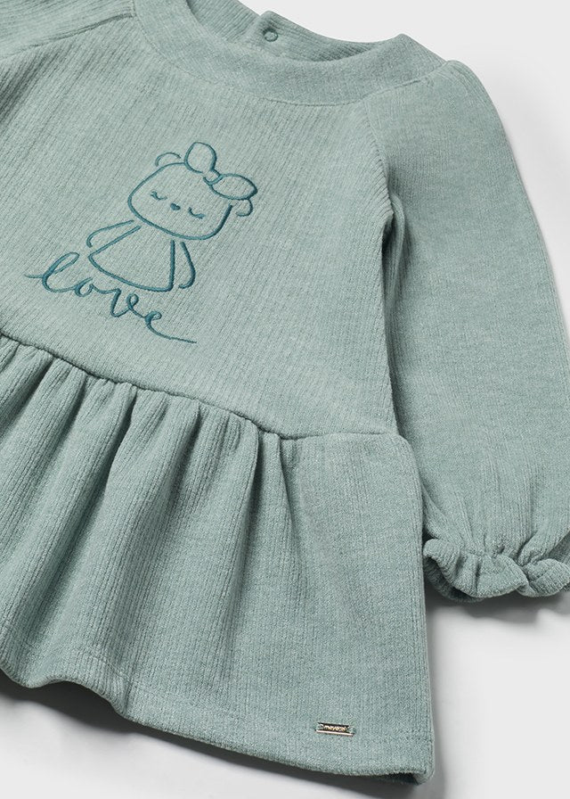 Vestito ricamo orsetto neonata Mayoral verde agata