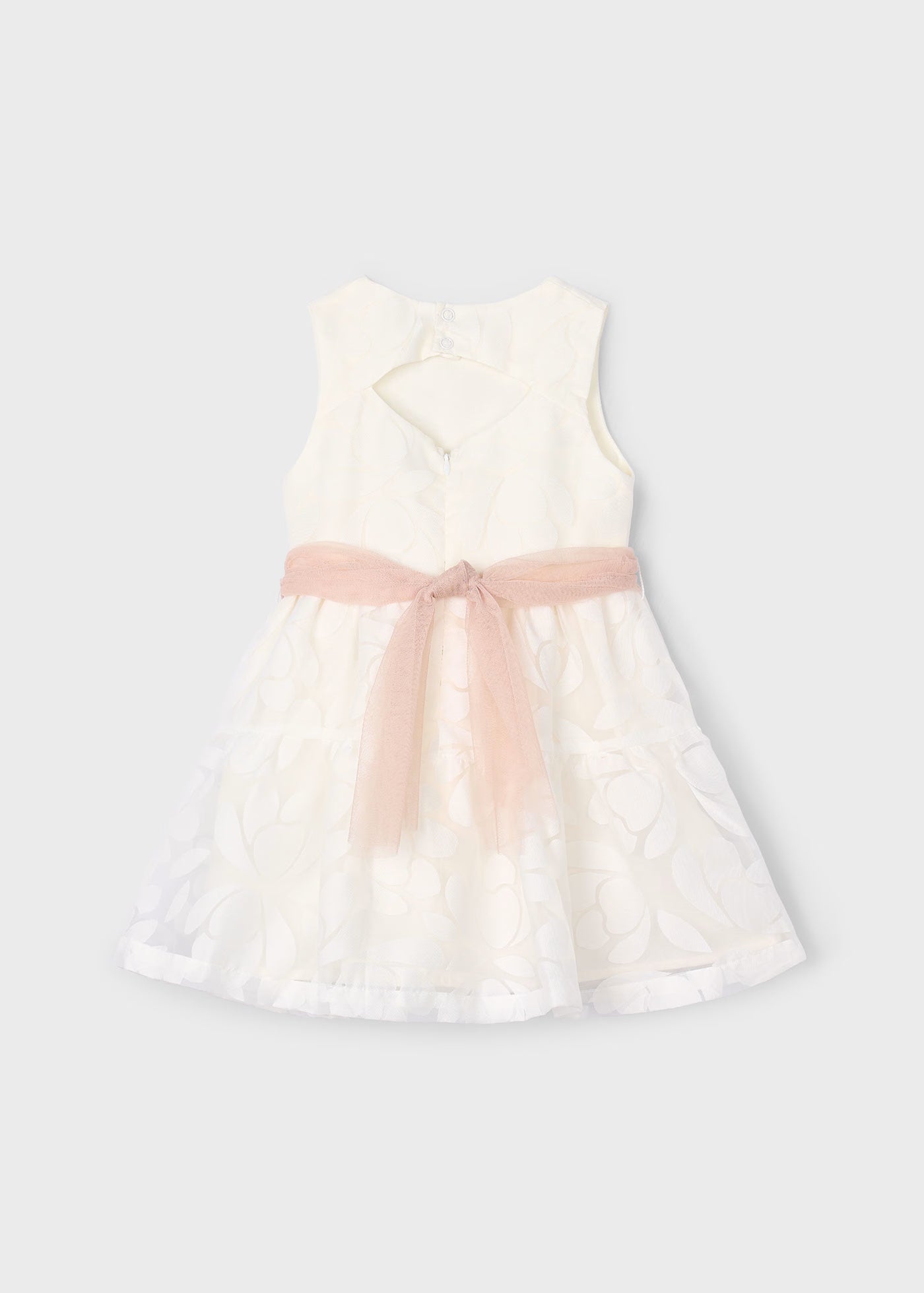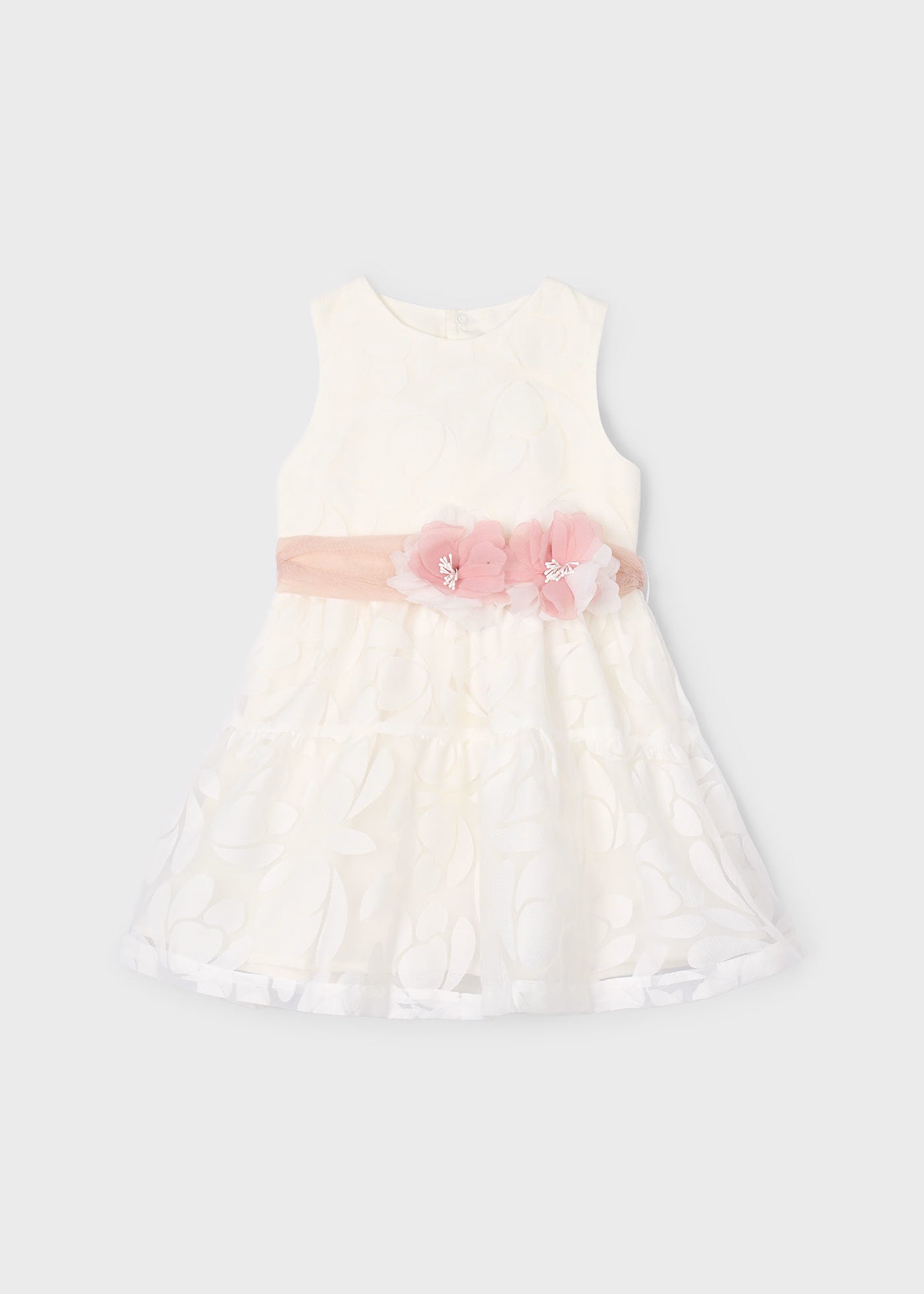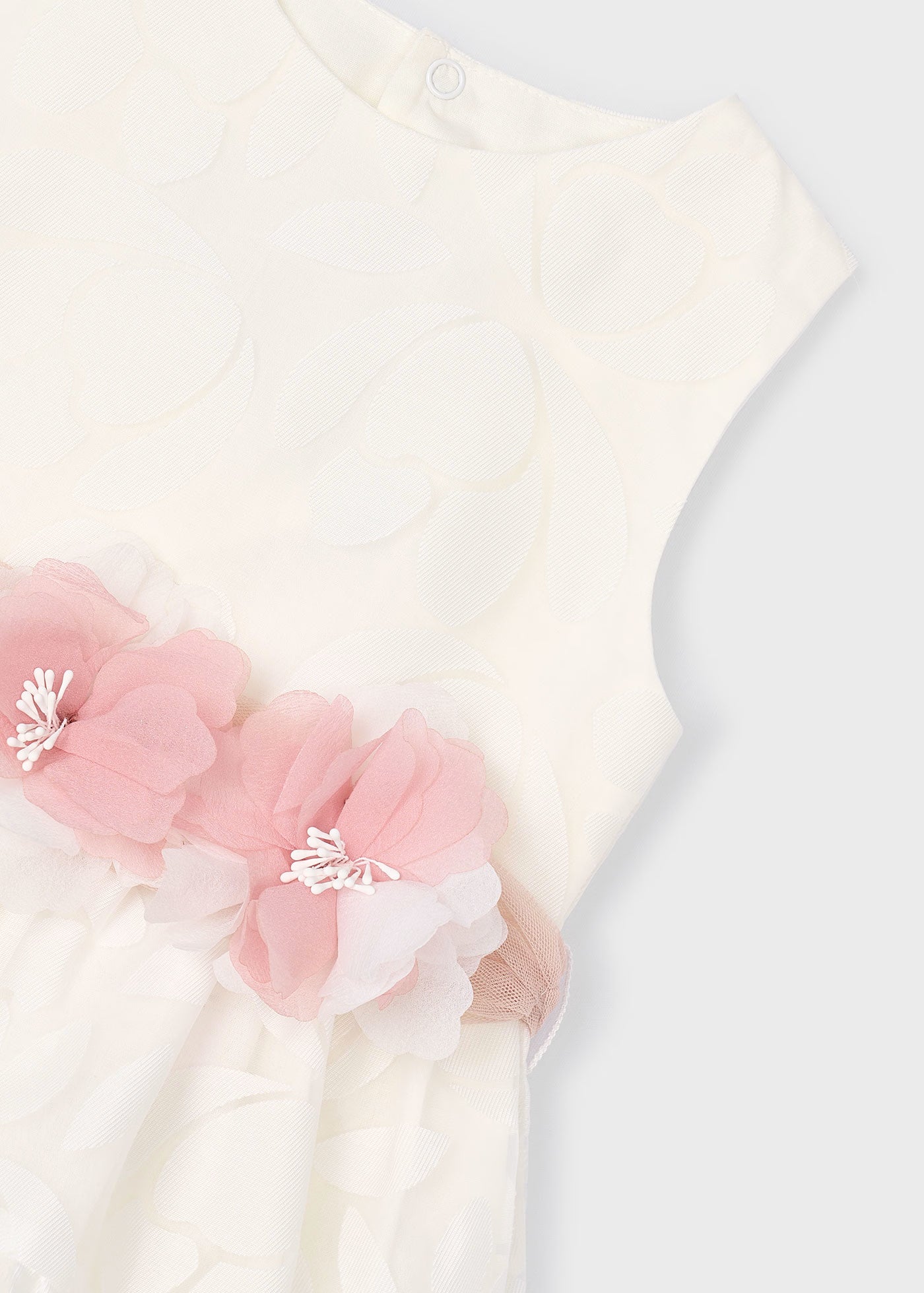 Abito panna floreale bambina Mayoral con fusciacca fiori rosato