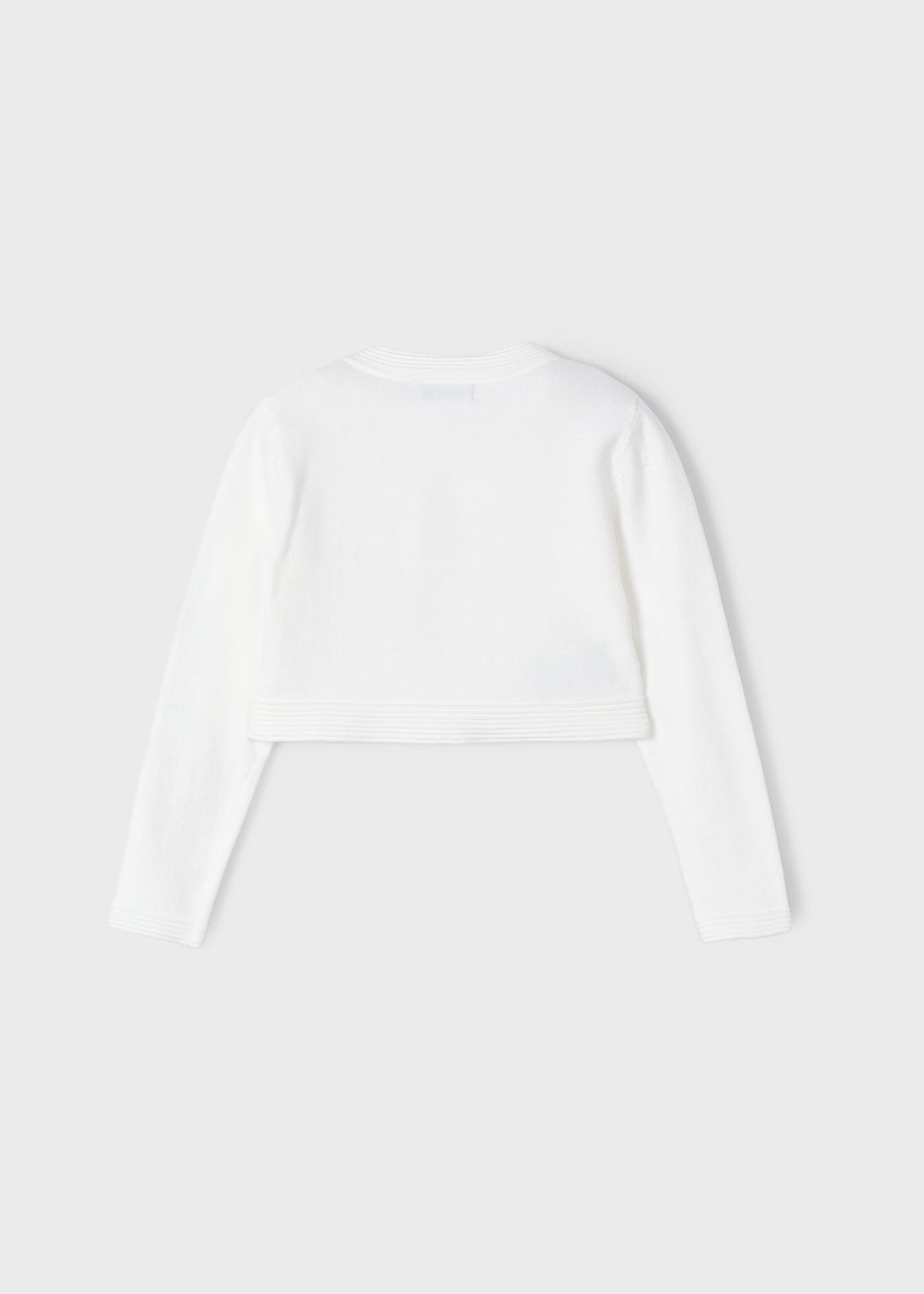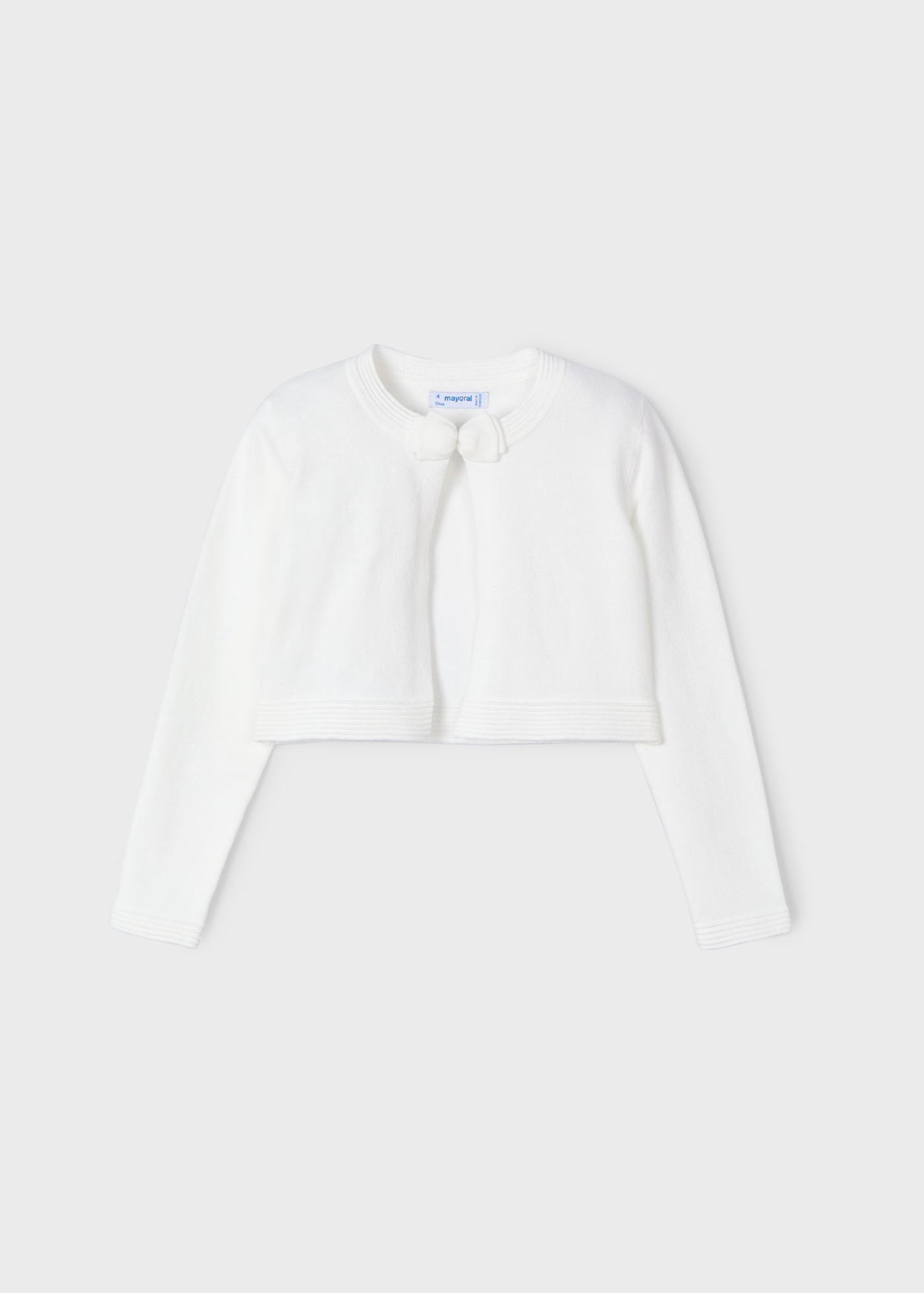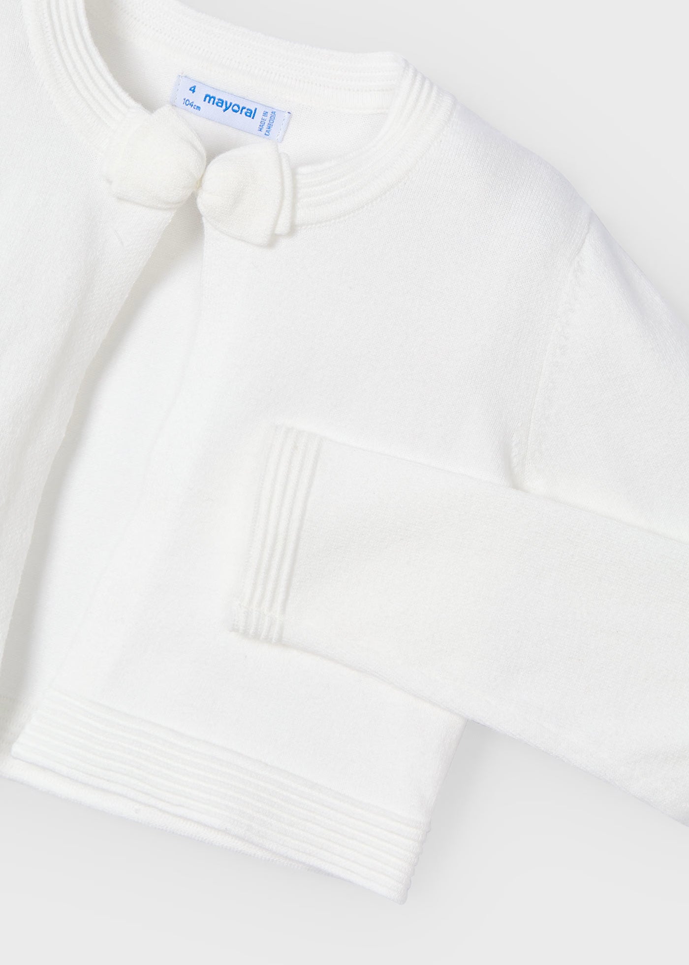 Cardigan manica lunga per bambina. Chiusura con bottone sul colletto per facilitare la vestibilità. Tessuto in tricot morbido al tatto. Elementi decorativi: fiocco. Scegliendo i nostri prodotti in cotone, supporti il nostro impegno nell'iniziativa Better Cotton. Il cotone Better Cotton è ottenuto attraverso un sistema di bilancio di massa e non può essere fisicamente ricondotto ai prodotti finali. tuttavia, i produttori di cotone beneficiano della domanda di Better Cotton in volumi equivalenti.