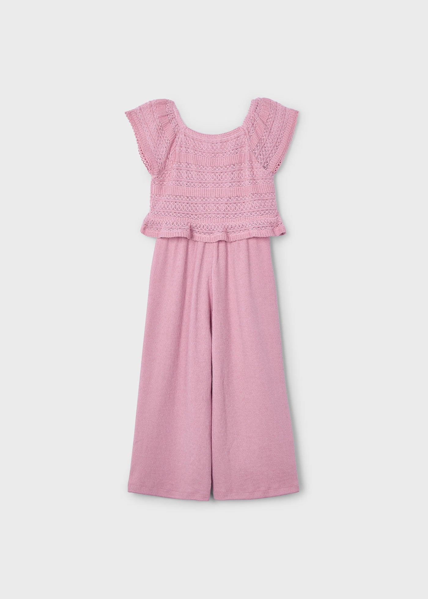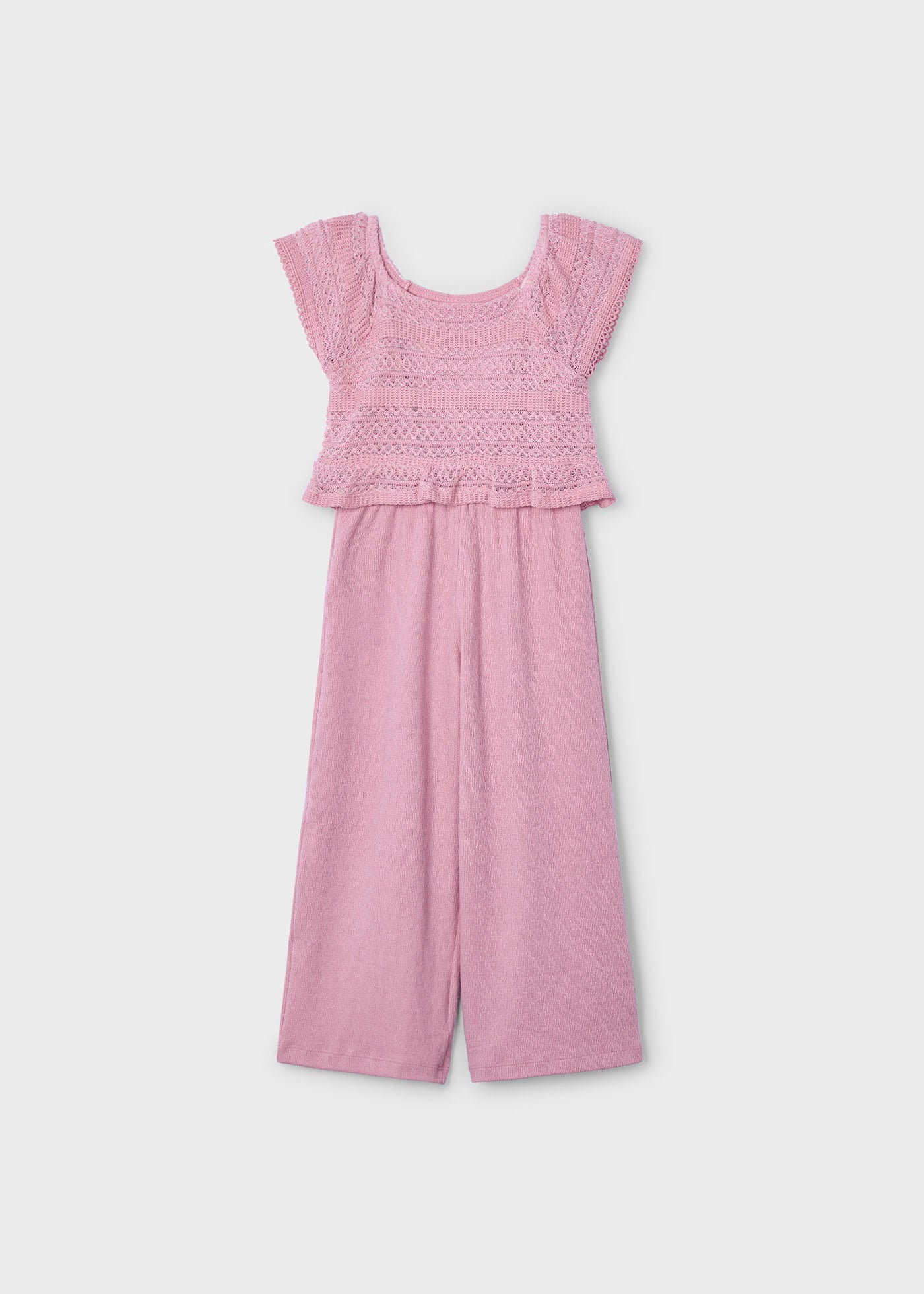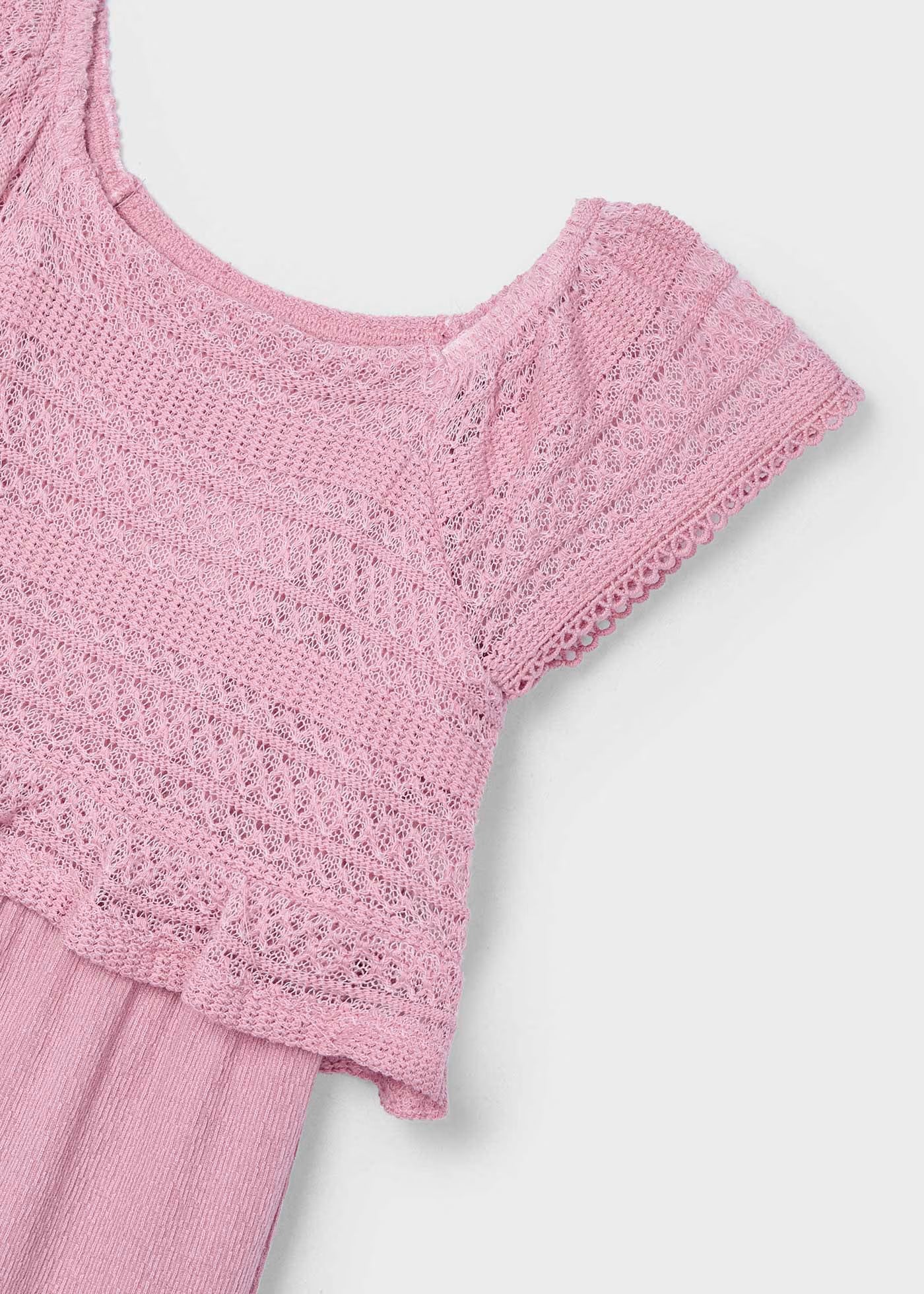 Tuta manica corta per bambina. Colletto quadrato. Confezione in diversi tessuti per ottenere un design unico e speciale.