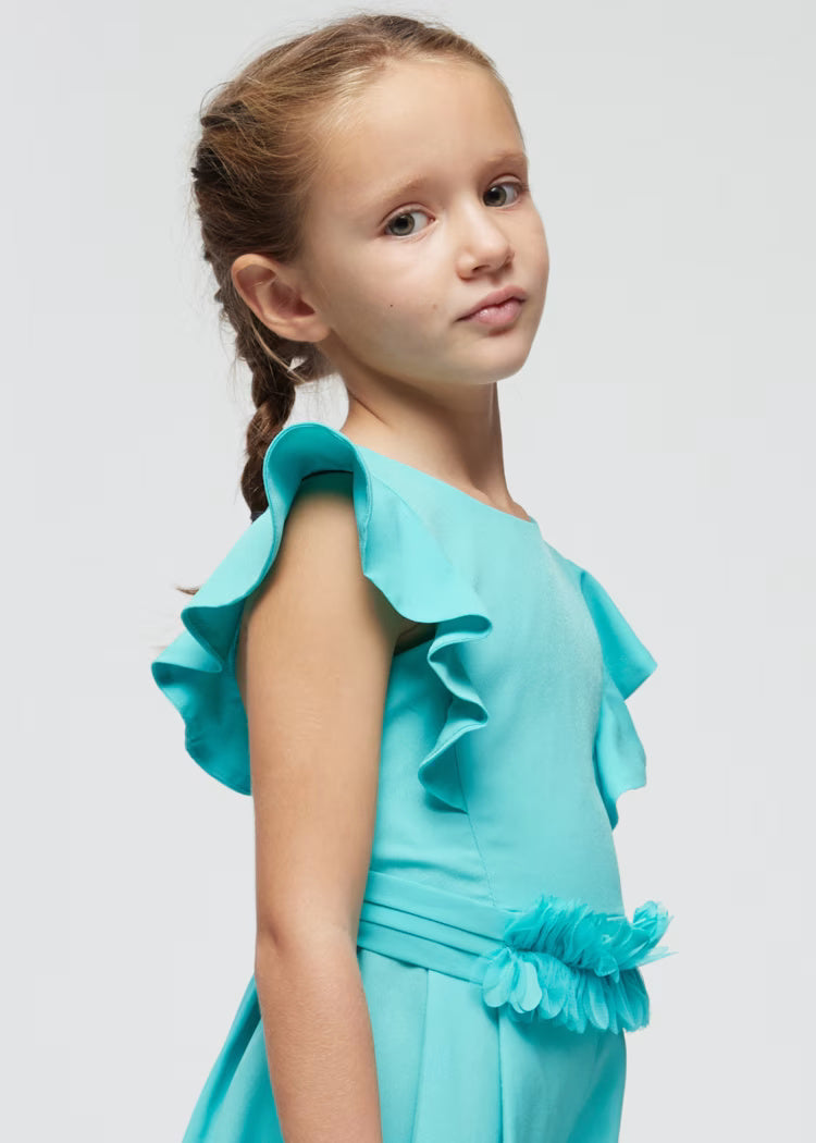 Abel&Lula Girls' Crêpe Ceremony Jumpsuit with White Chain Belt
