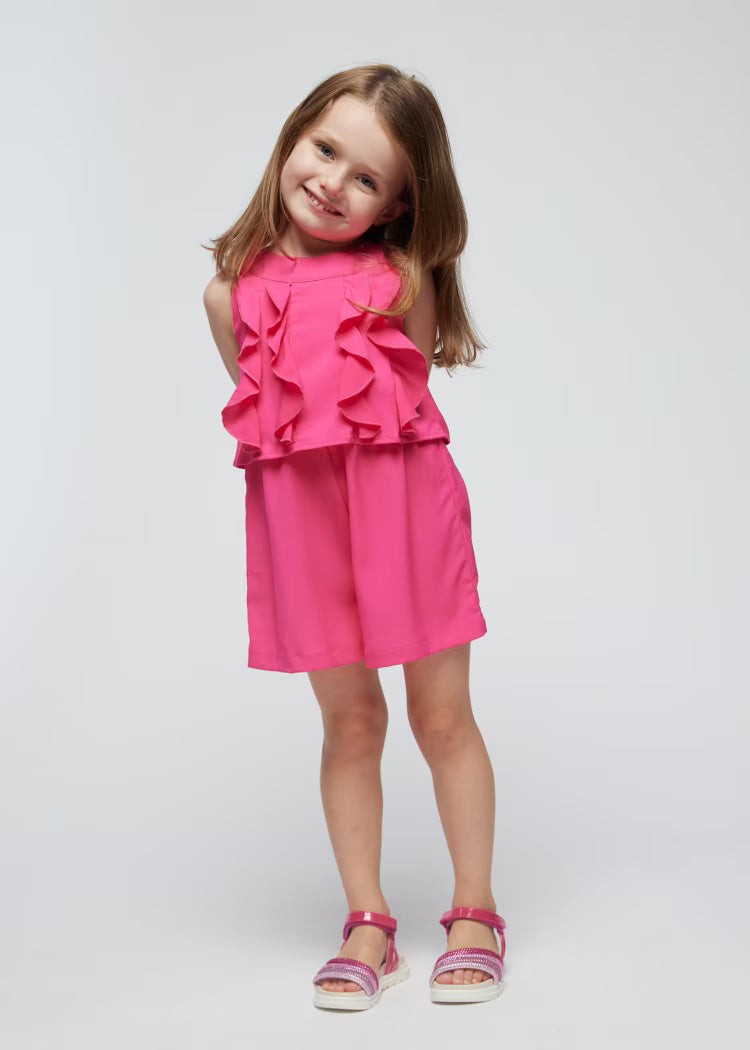 Tuta con cinta crepe ragazza Mayoral rosa tulipano