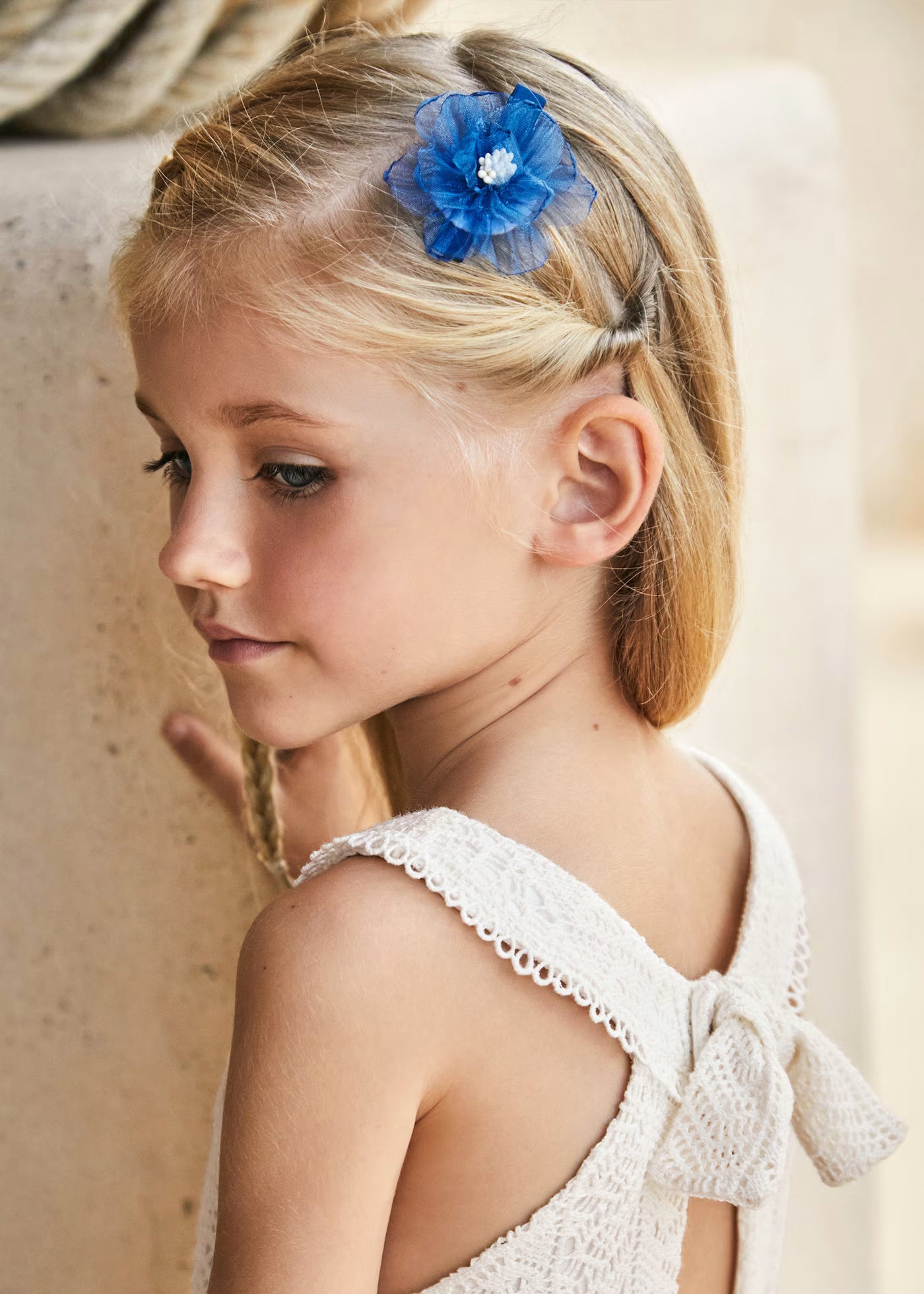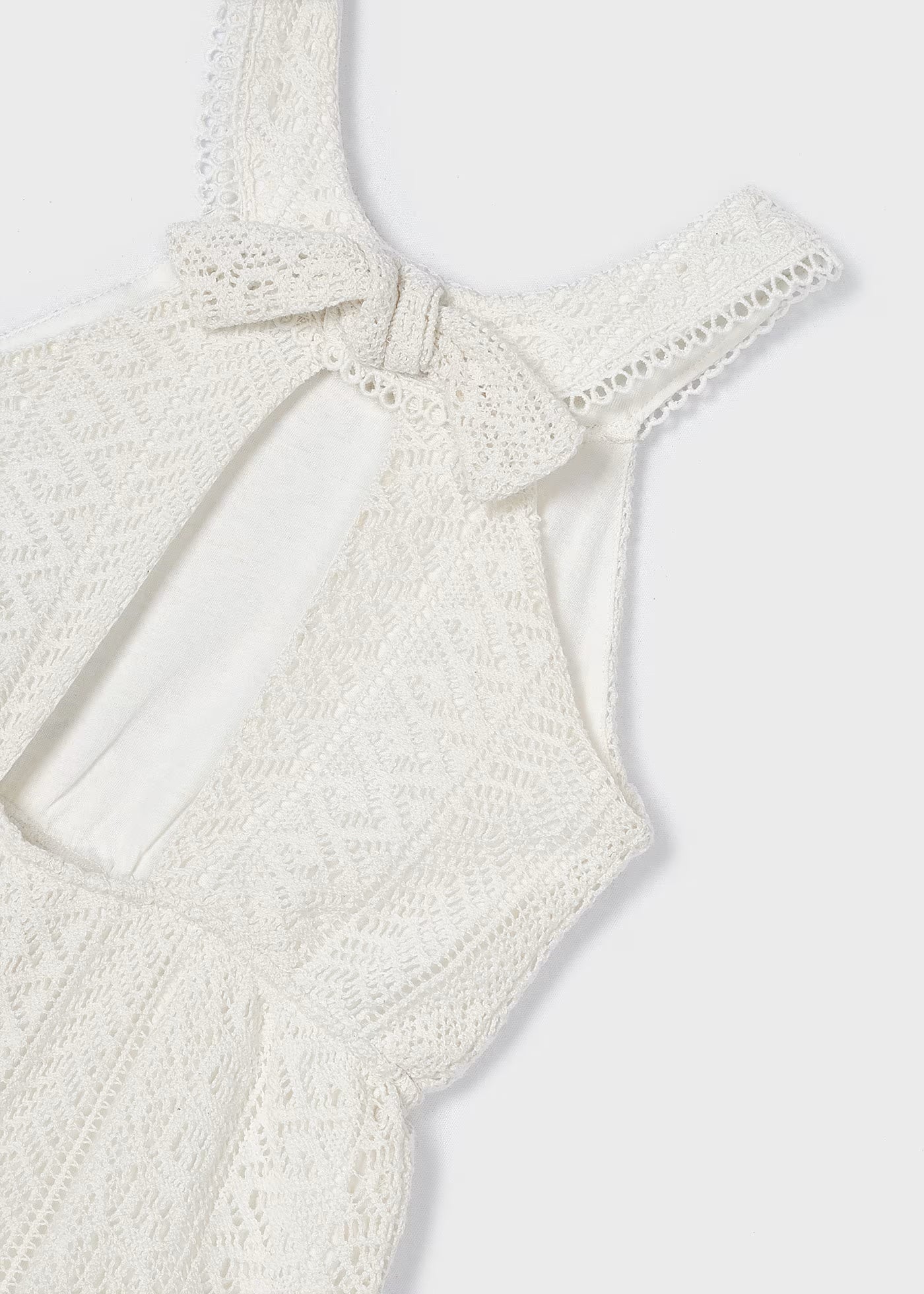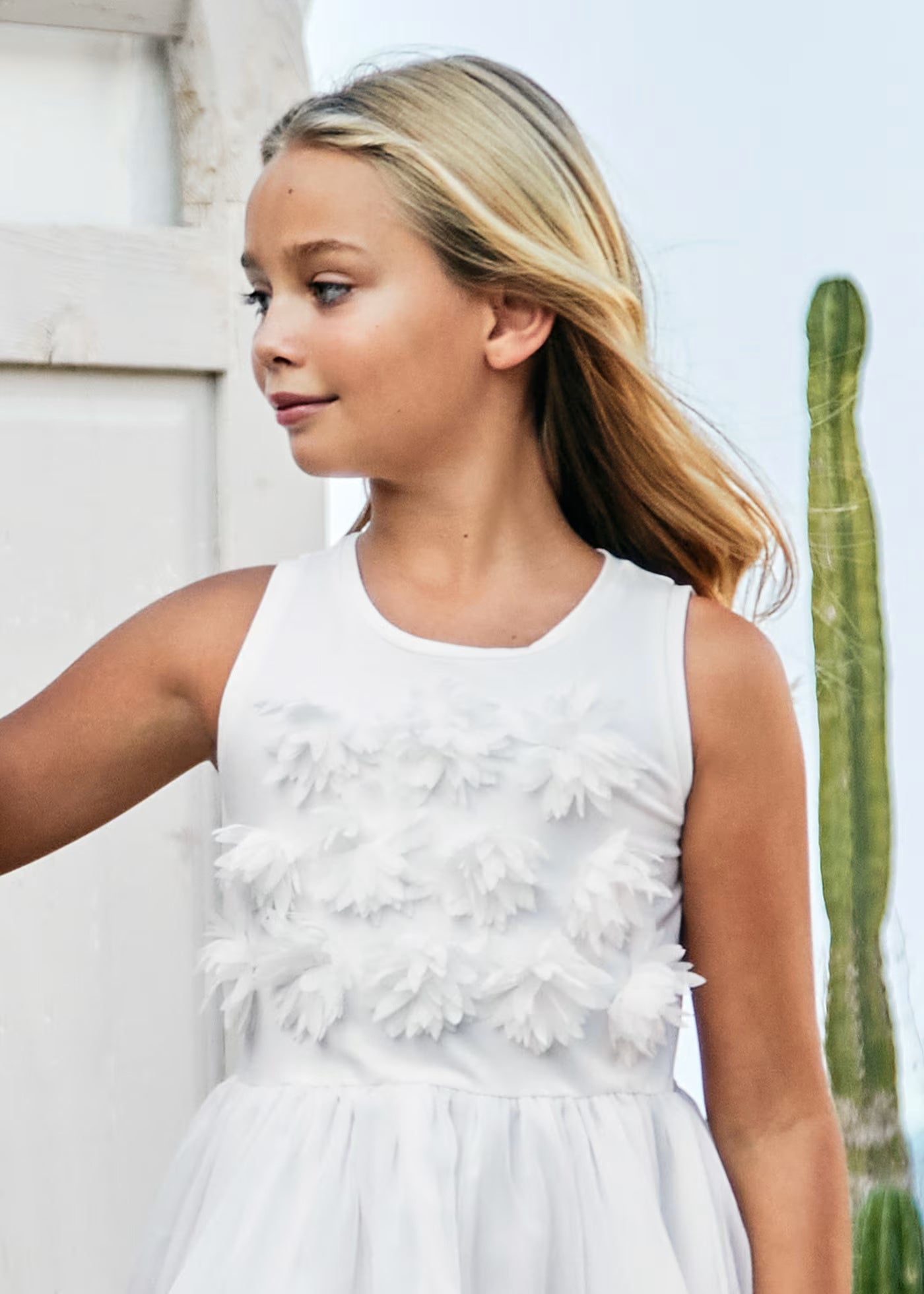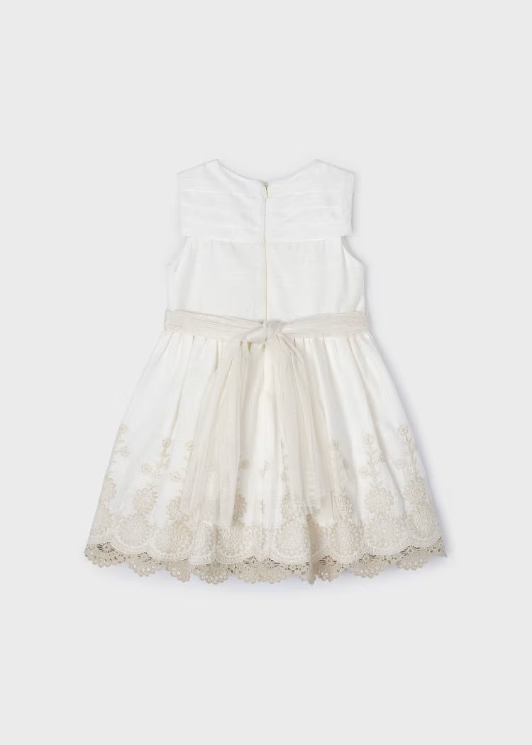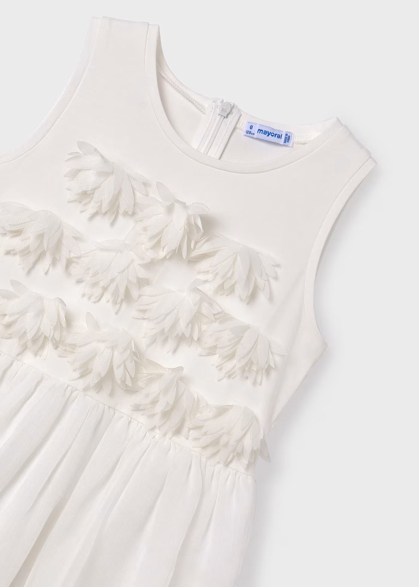 Vestito smanicato applicazioni ragazza Mayoral panna