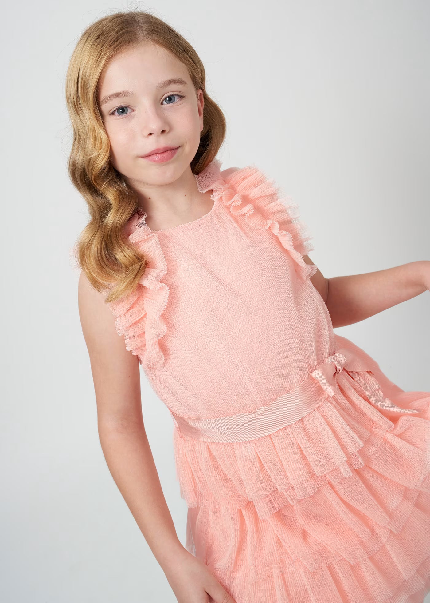Vestito tulle con volant ragazza Mayoral rosa tulipano