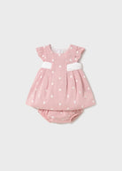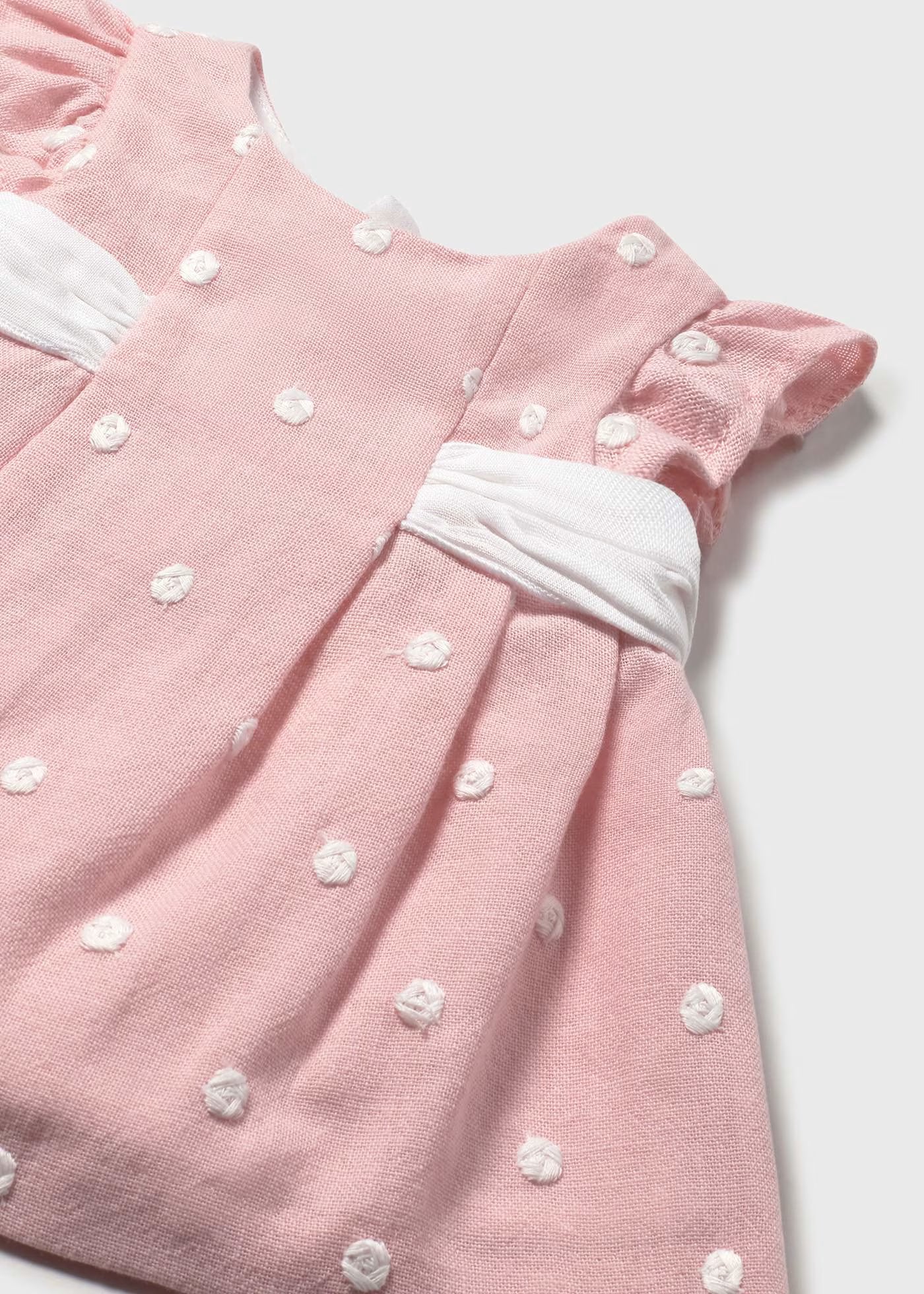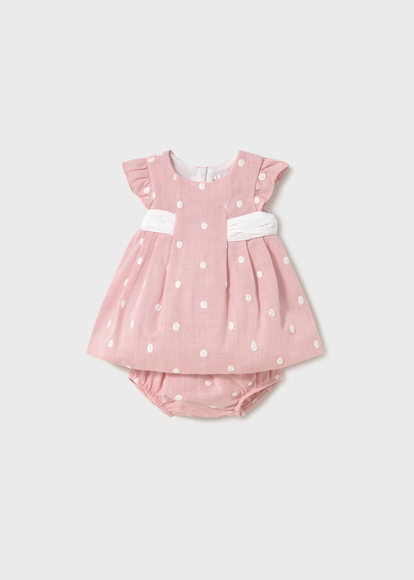 Vestito con copri pannolino neonata rosa ricamo pois fiocco