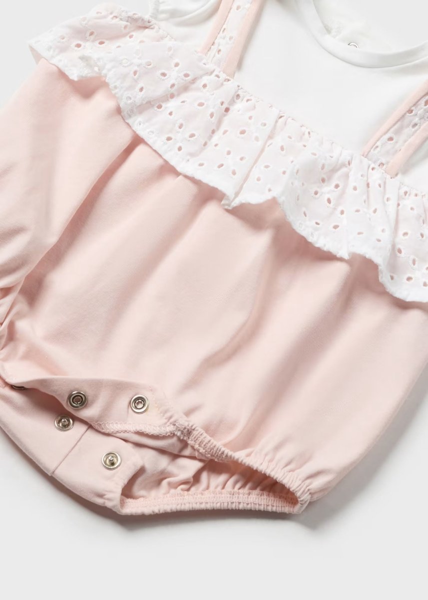 Mayoral Newborn Baby Girl's Pink Openwork Dungarees Romper with Hat