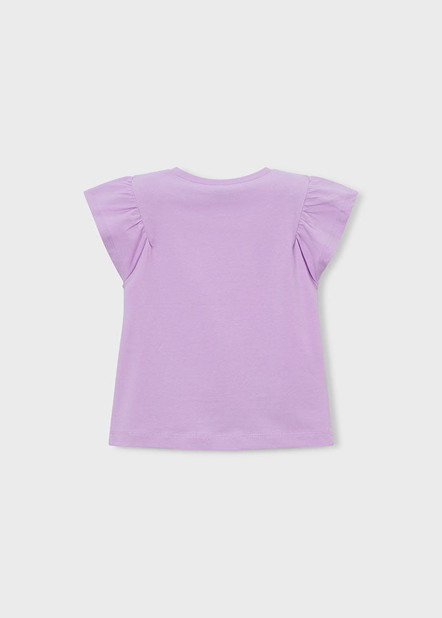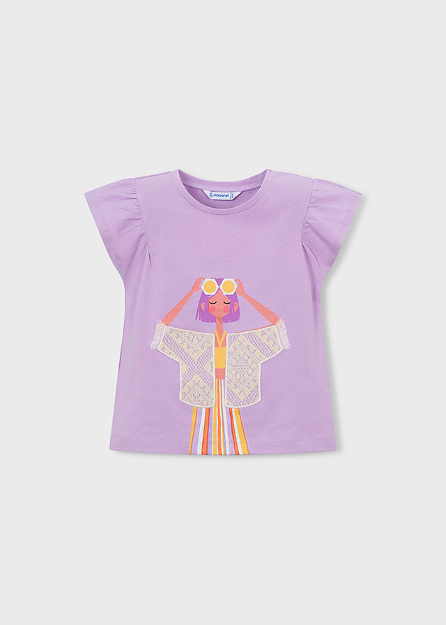 T-shirt Mayoral Bambina Lilla con Grafica Girl ed Inserti in Pizzo - Glicine