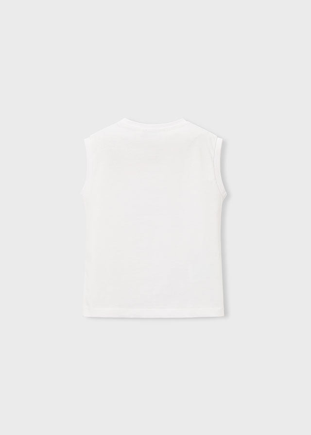 Una t-shirt smanicata fresca e originale per il tuo bambino, firmata Mayoral. Il colore bianco con la simpatica grafica pesce surfing crea un look estivo e spensierato, perfetto per le giornate di sole. Il cotone 100% garantisce traspirabilità e morbidezza tutto il giorno.