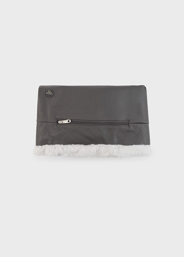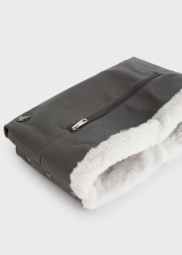 Manica per passeggino con un tocco piacevole che ti permetterà di camminare con il tuo bambino senza che le tue mani si sentano fredde. Un accessorio molto pratico e caldo per l'inverno. Modello esterno in polyskin. Interno del corpo rivestito in pelliccia fine e morbida. Tasche con cerniere.