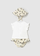 Completo 3 pezzi con cappello neonata Mayoral Newborn "Lettere" cecio