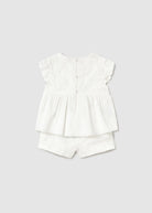 Completo pantaloncino e blusa tulle ricamo neonata Mayoral panna