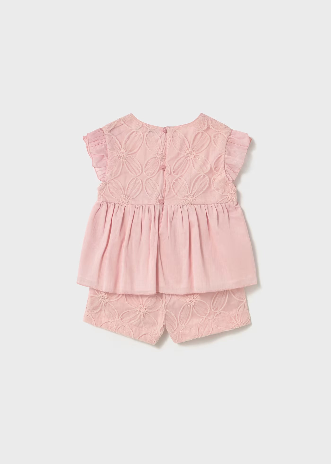 Completo pantaloncino e blusa tulle ricamo neonata Mayoral rosa