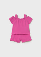 Completo pantaloncino e maglietta neonata Mayoral tinta unita fucsia