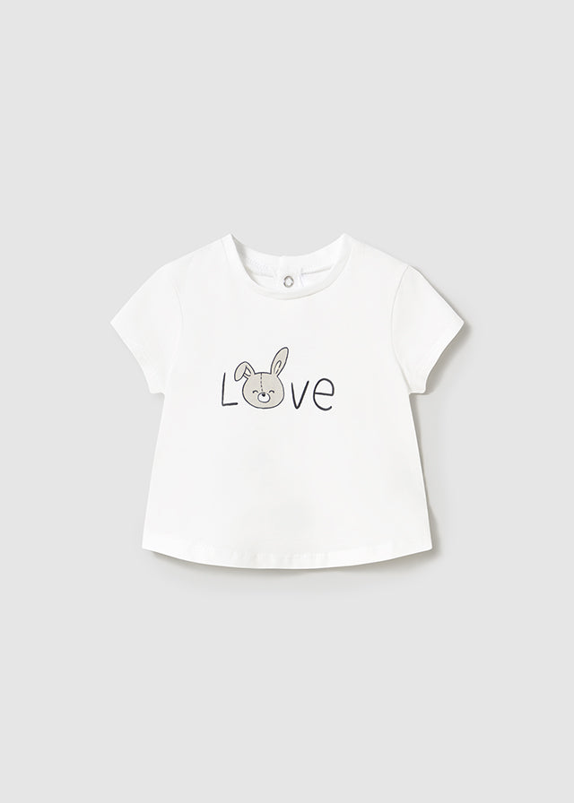 Maglietta manica corta per neonato. Chiusura con bottoni sulla schiena per facilitare la vestibilità del capo. Elementi decorativi: ricamo