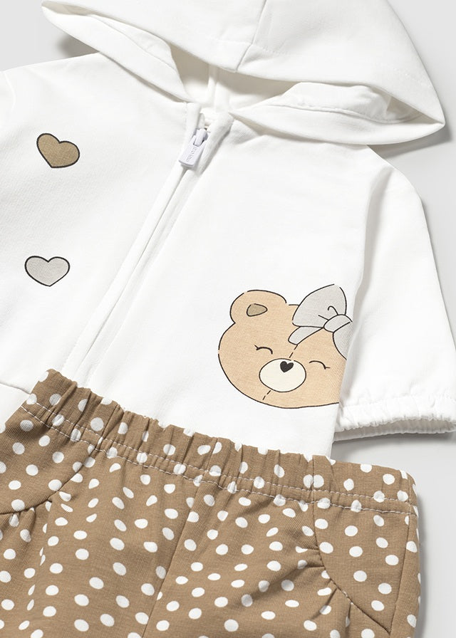 Tuta 3 pezzi con felpa zip neonata Mayoral Newborn bianca e cacao