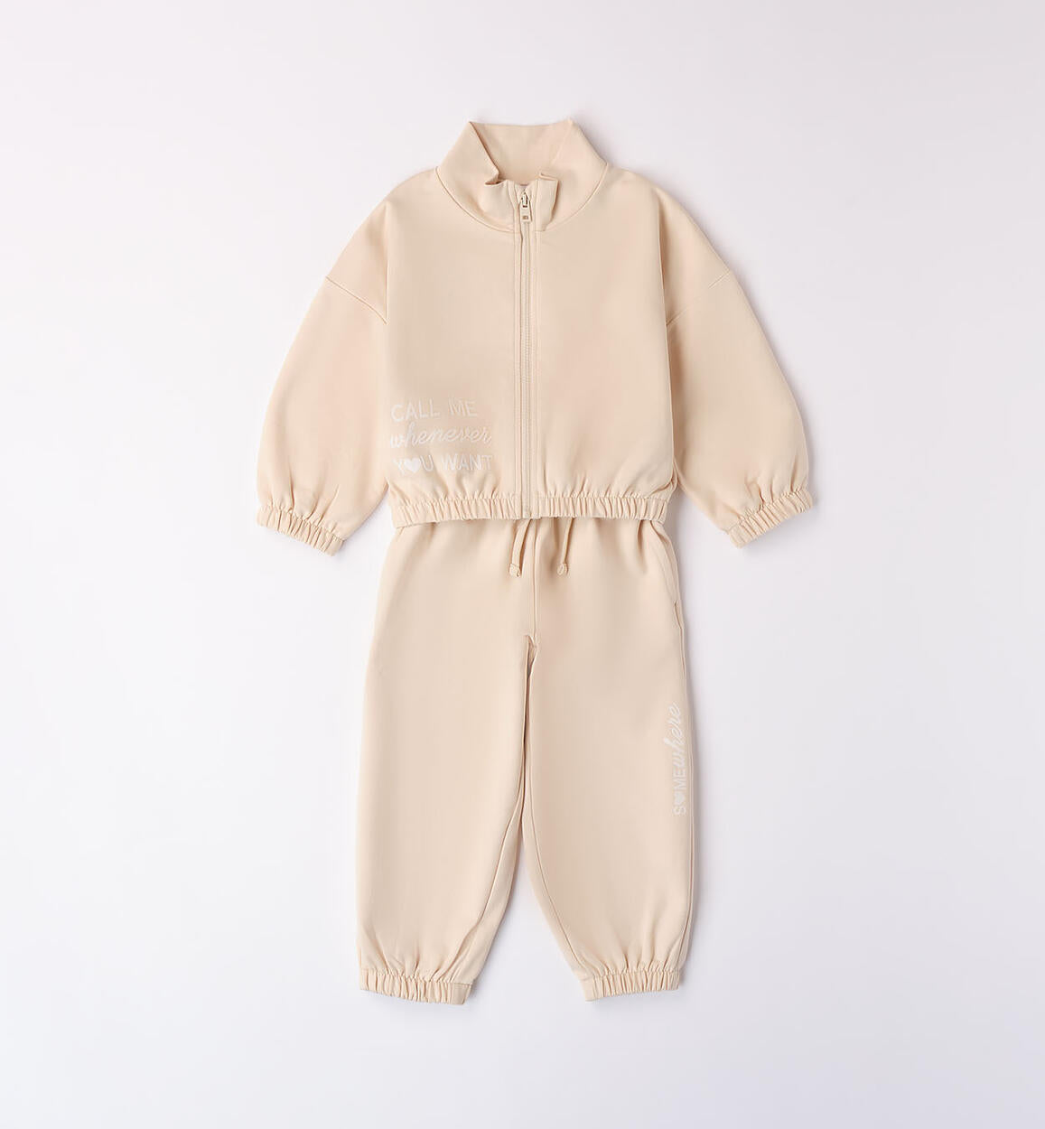 Tuta zip fresco cotone garzato bambina iDO beige
