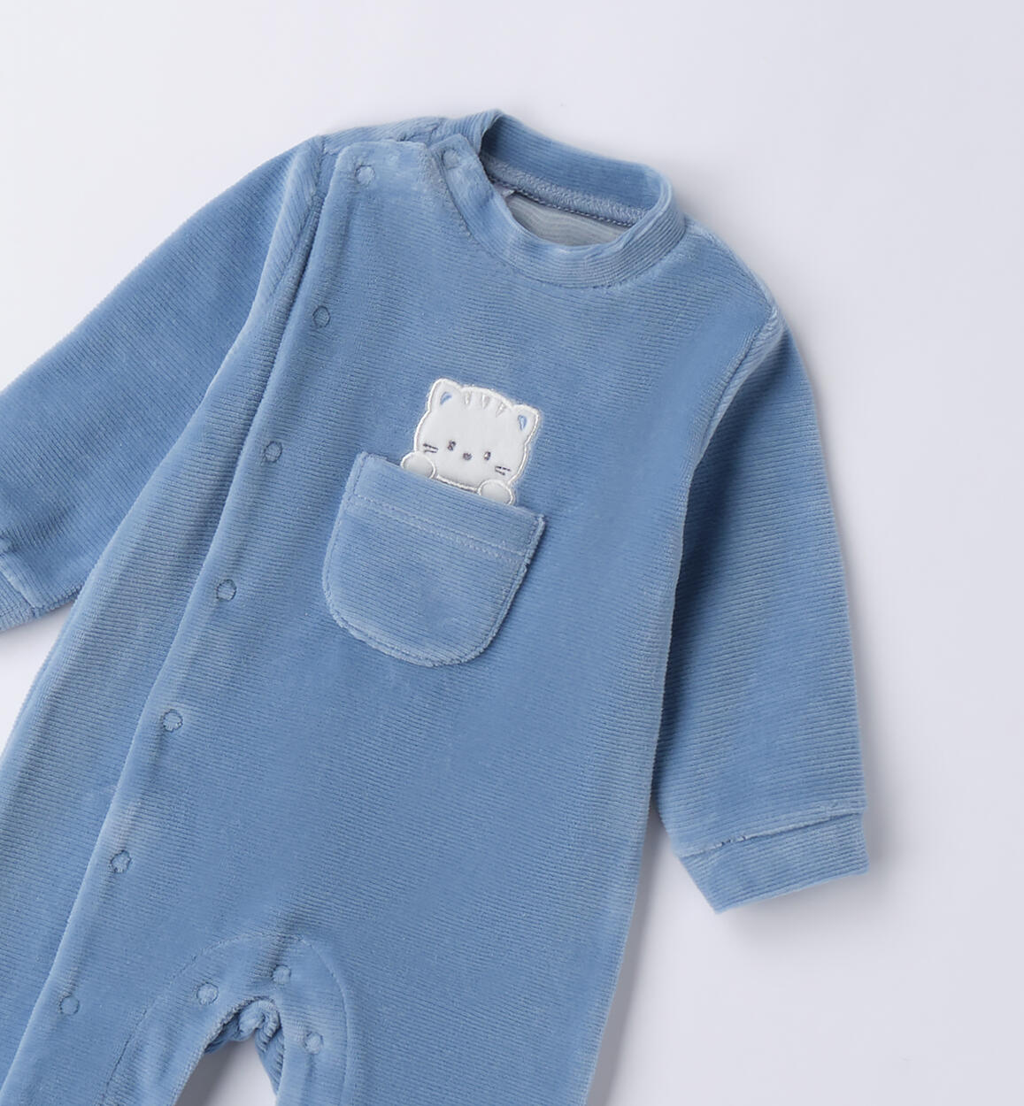 Tutina in ciniglia neonato iDO ricamo gattino azzurro