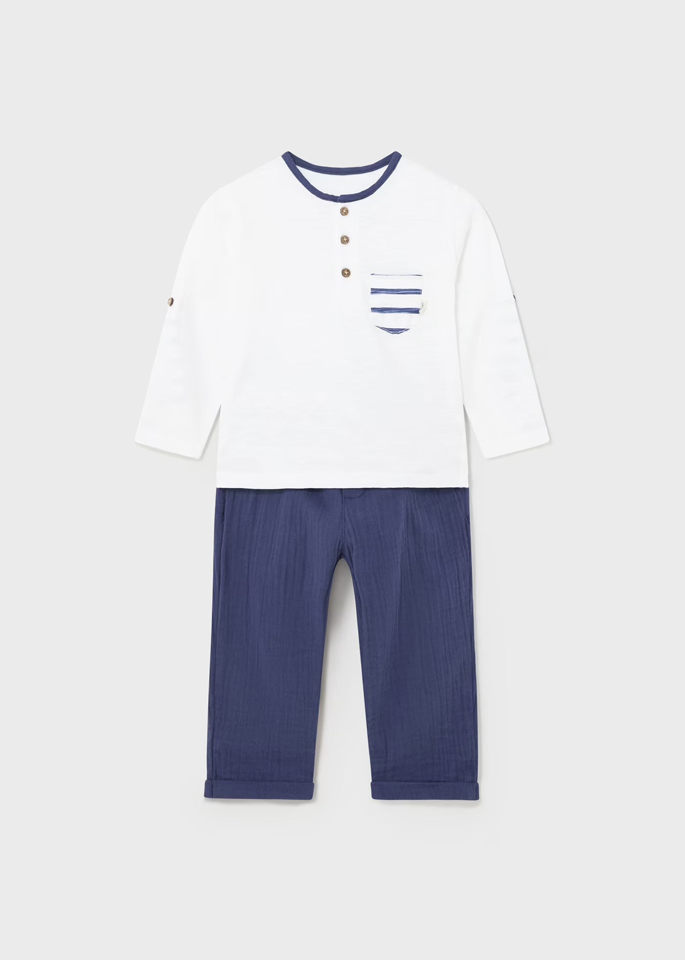 Mayoral Newborn 2-piece linen baby set, light blue