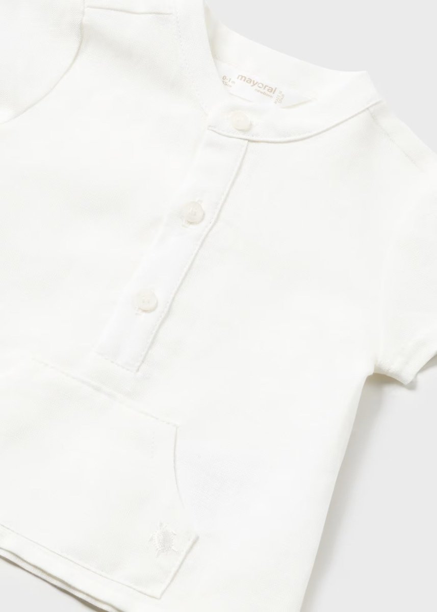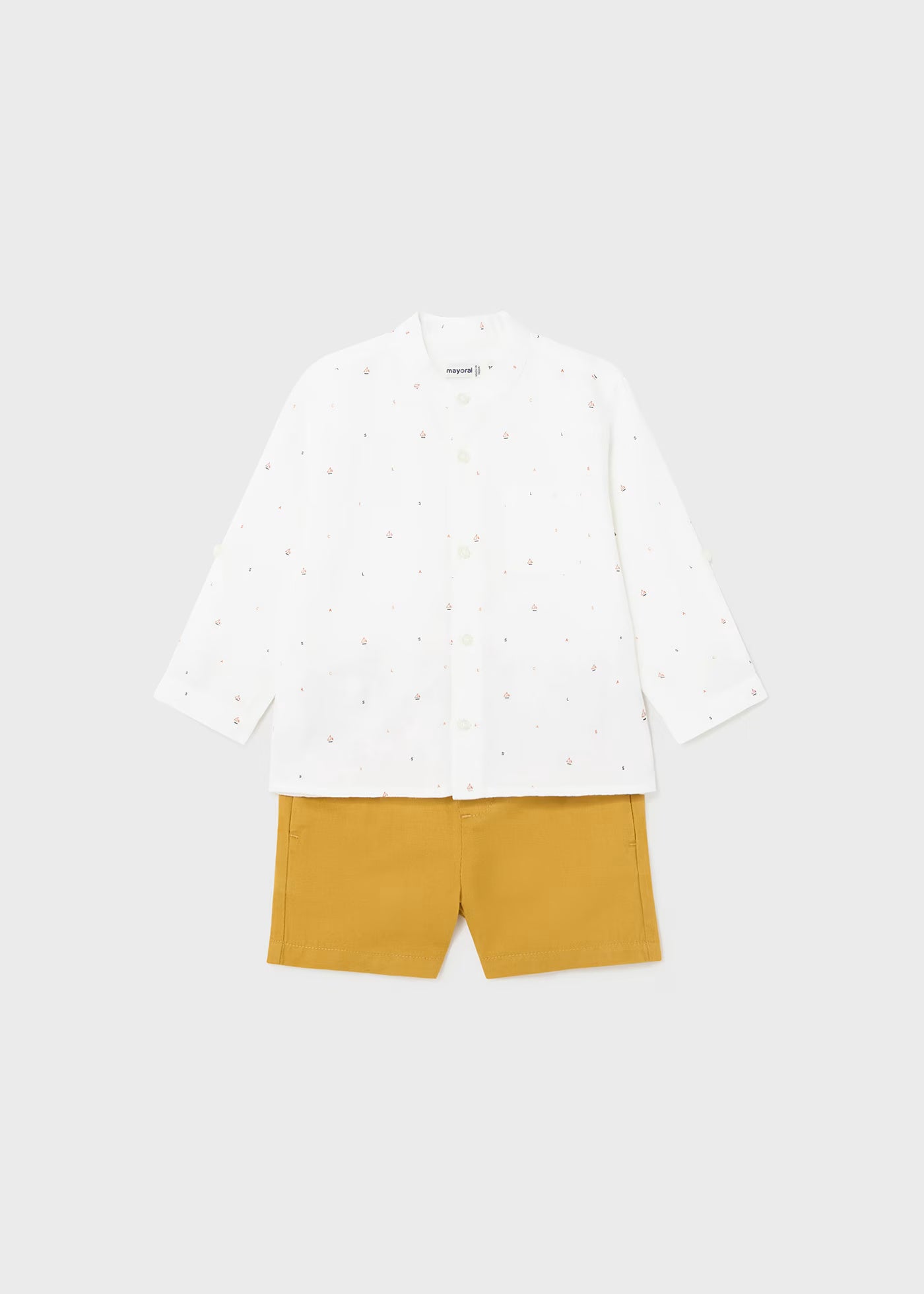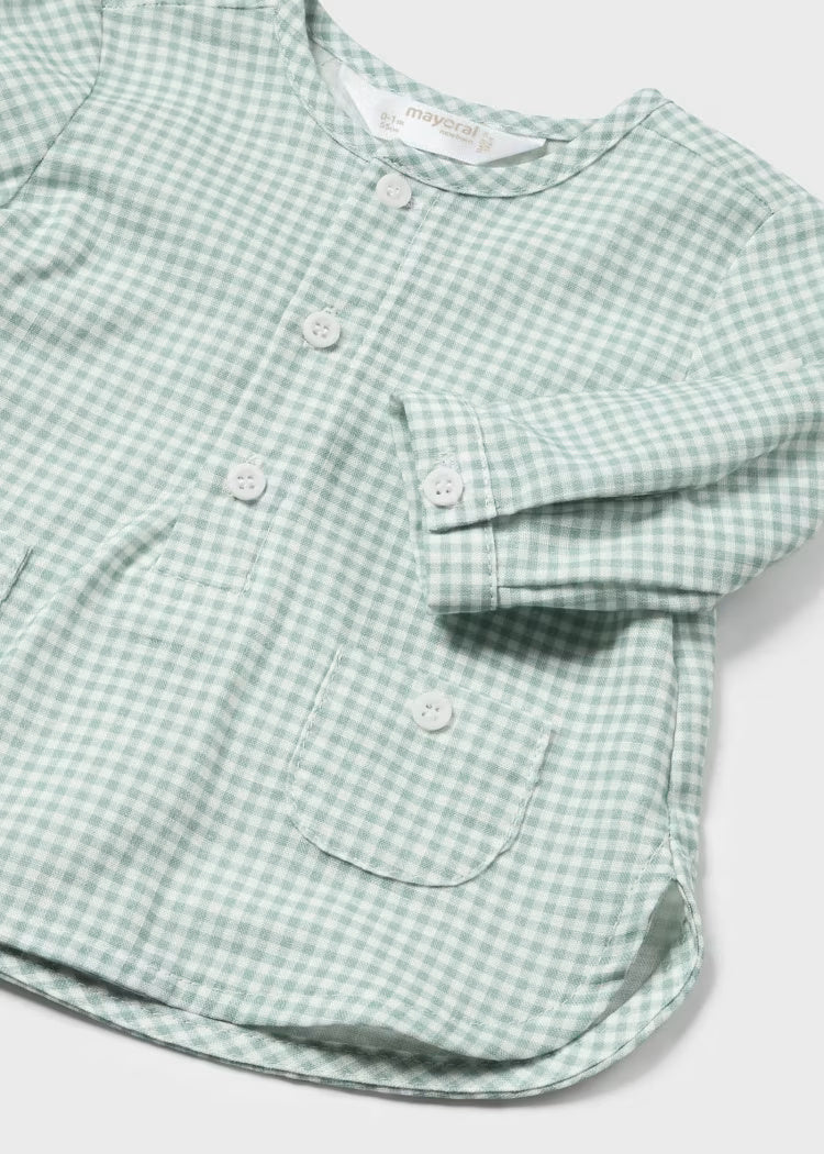 Completo pantaloncino e camicia neonato Mayoral beige e verde
