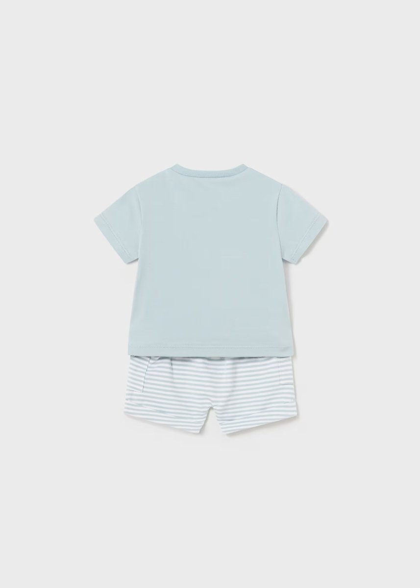 Mayoral Newborn 2-piece set in blue and green linen stripes