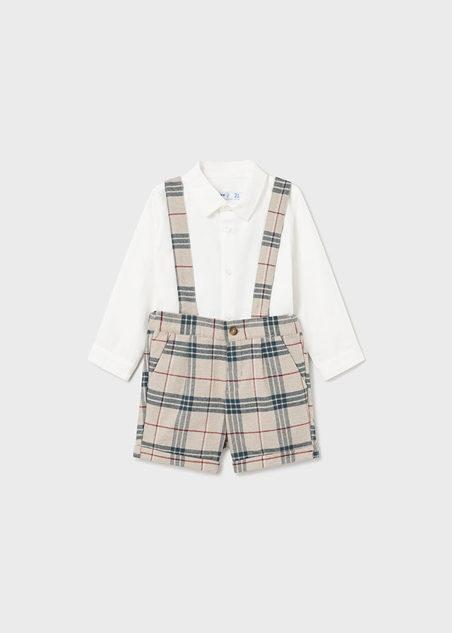 Completo salopette quadri e body neonato Mayoral Newborn quadri