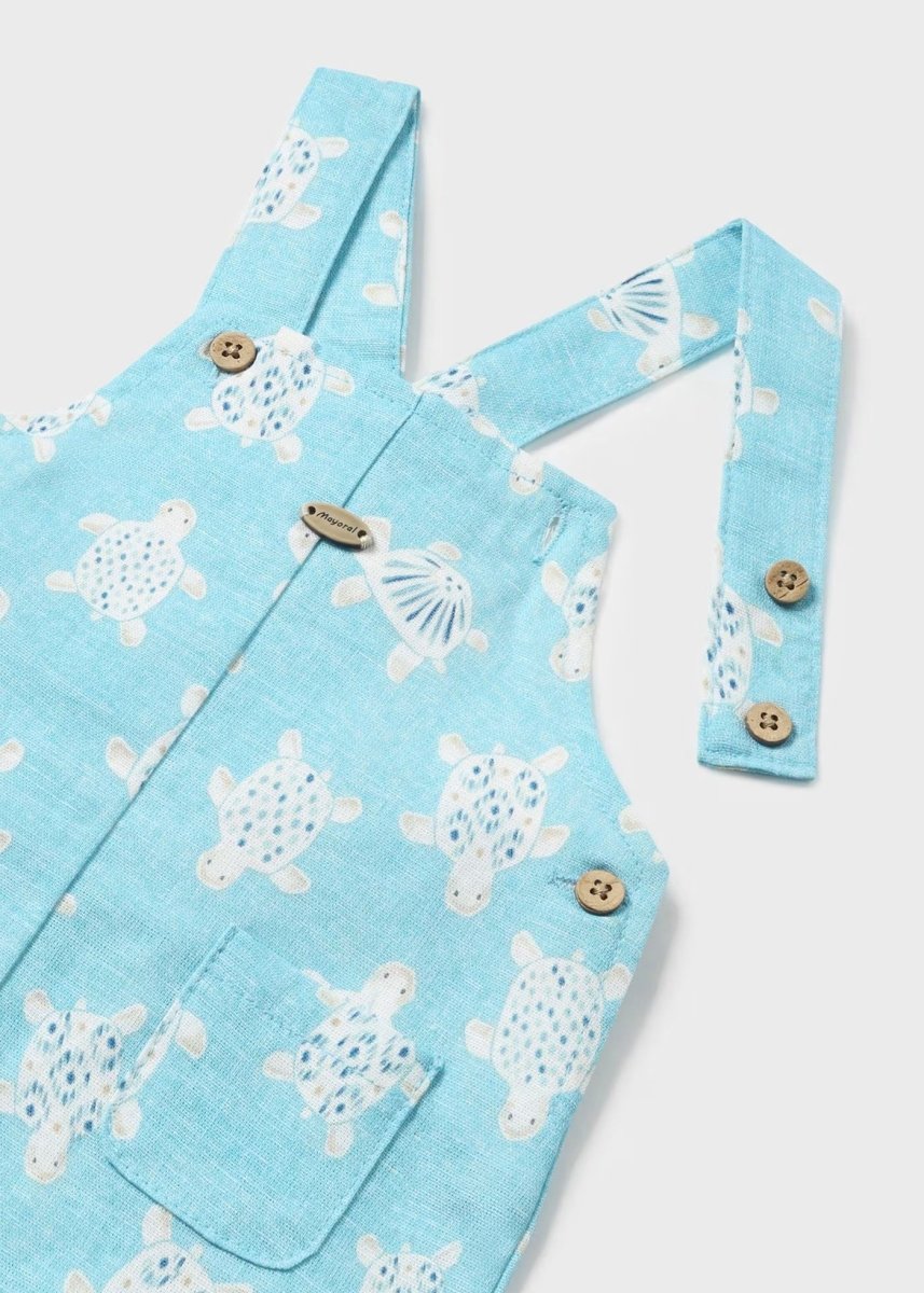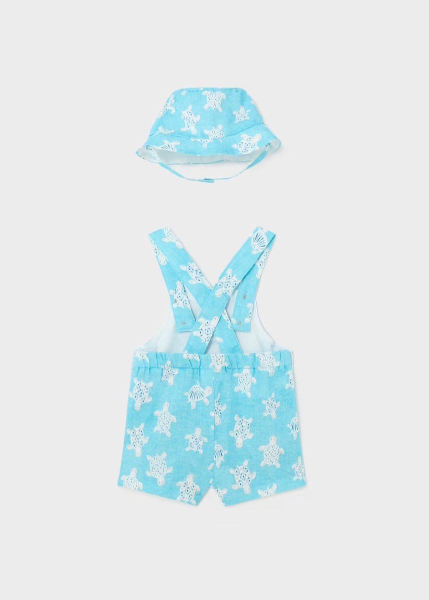 Mayoral Newborn Linen Overalls with Hat Blue "Turtles"