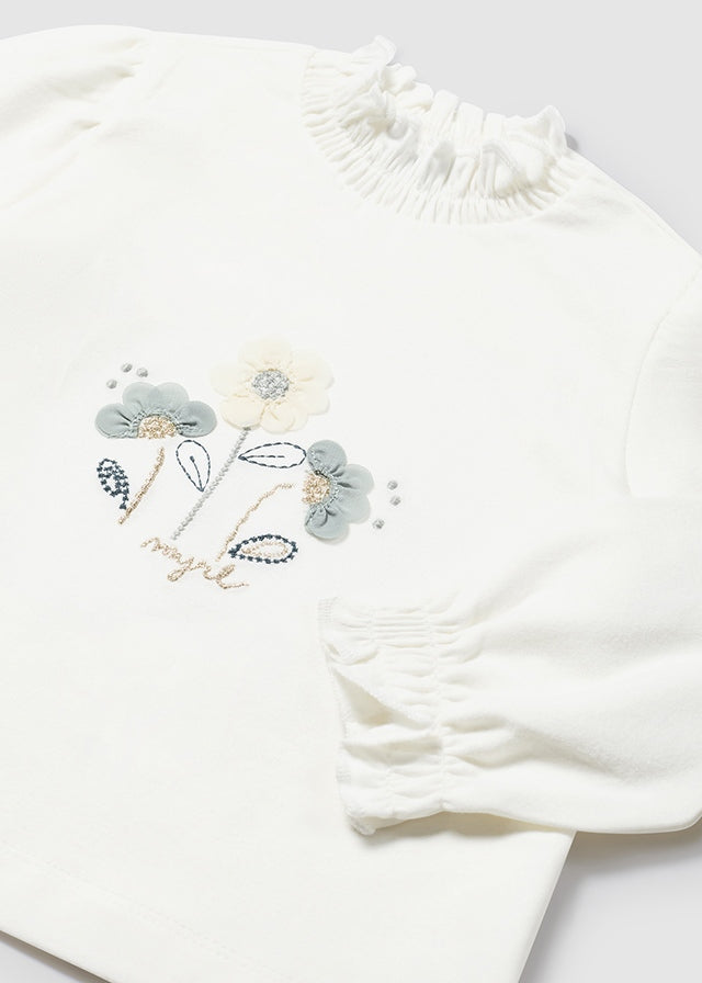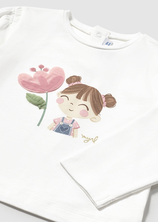 Maglietta manica lunga neonata Mayoral " fiore" bianca