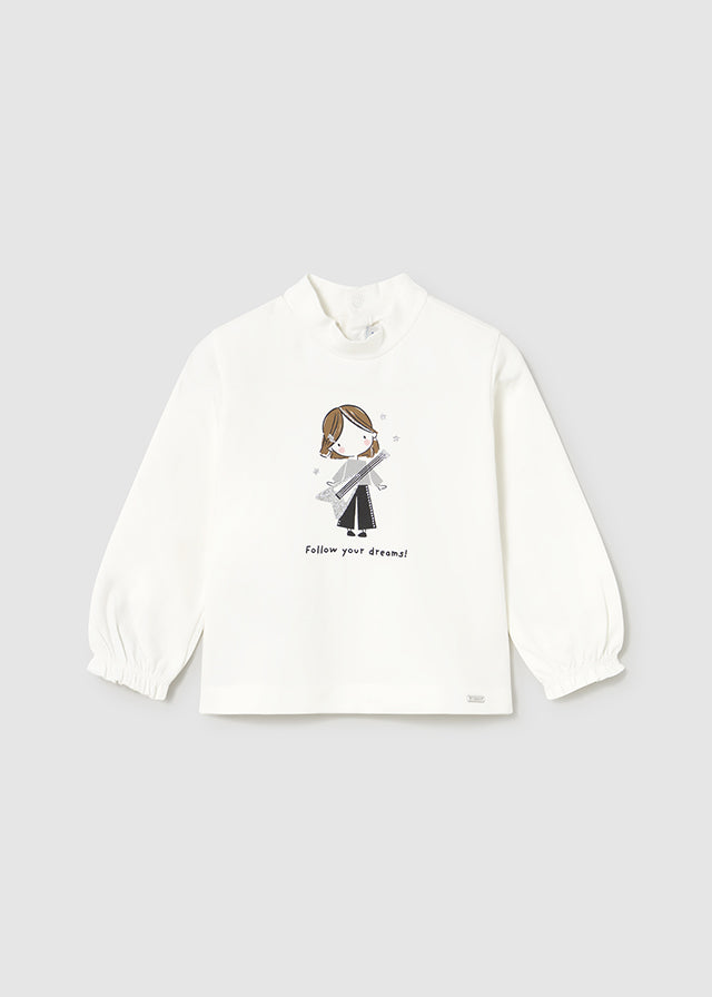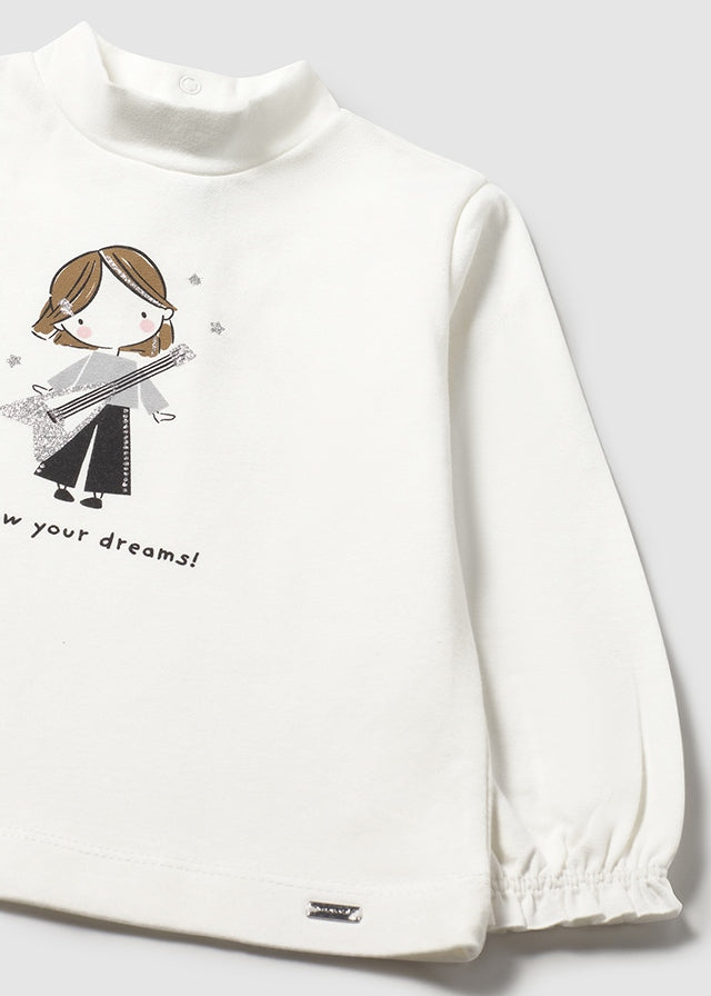 Maglietta lupetto bambola neonata Mayoral "bambola chitarra" panna