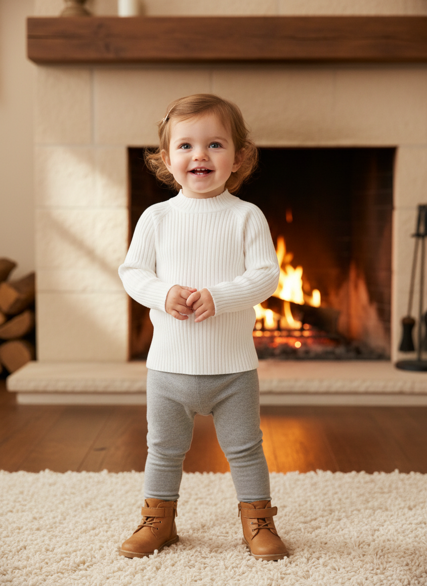 Maglietta manica lunga per neonata. Collo modello lupetto. Tessuto in tricot morbido al tatto.