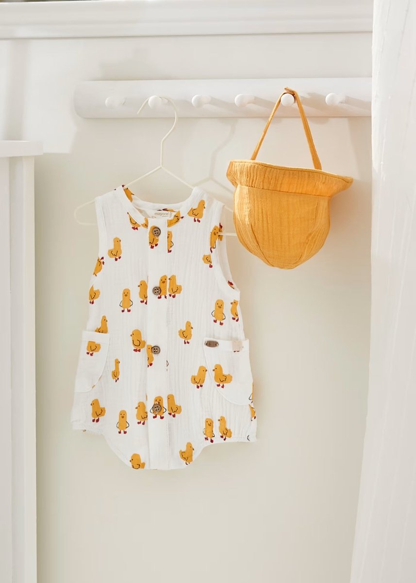 Mayoral Newborn Chick Print Romper with Hat
