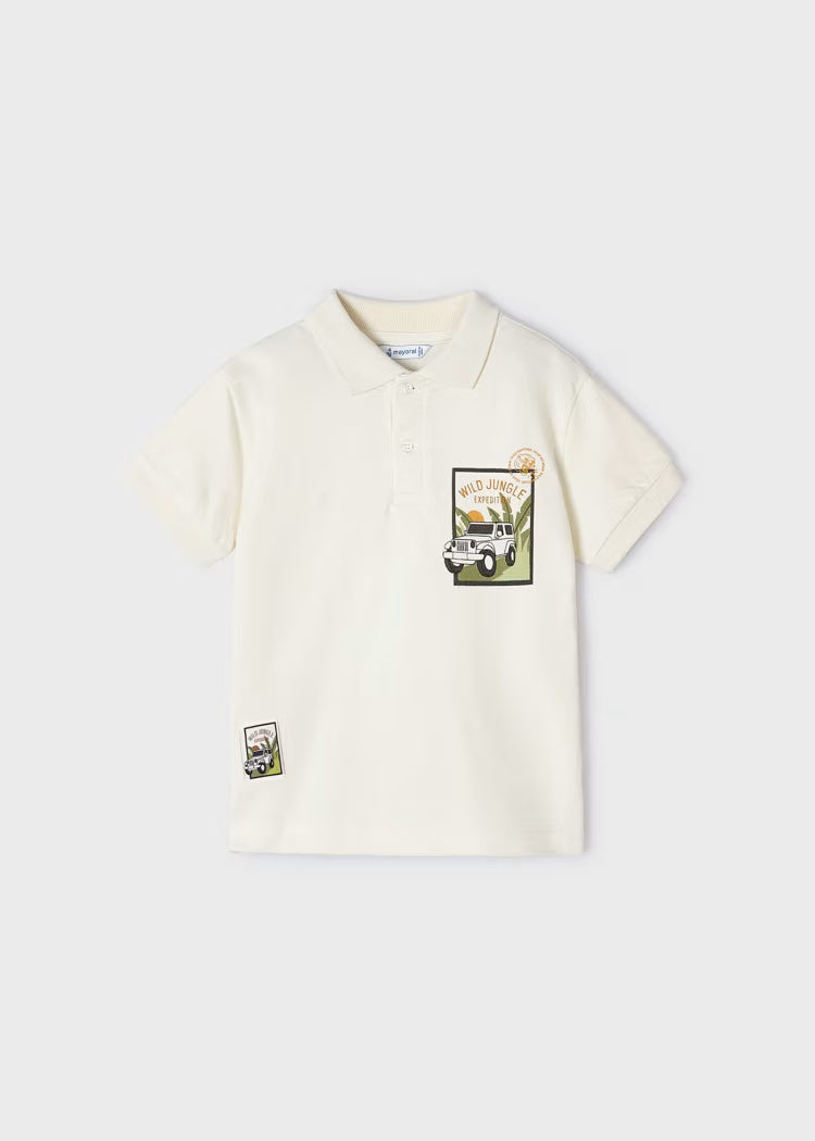 Short sleeve polo shirt for kids. Classic polo collar. 100% cotton fabric. Floral print.
