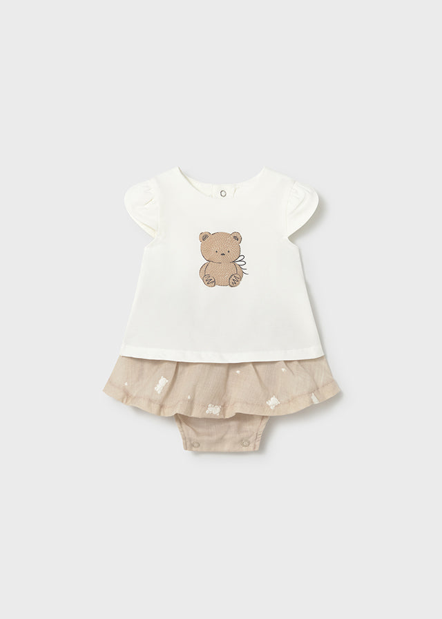 Summer set for baby girls by Mayoral Newborn, available in the Bears or Hearts pattern, in White and Beige colors. Soft and comfortable, ideal for the first months of life. Made of breathable and stretchy cotton for a delicate fit on the baby's skin.