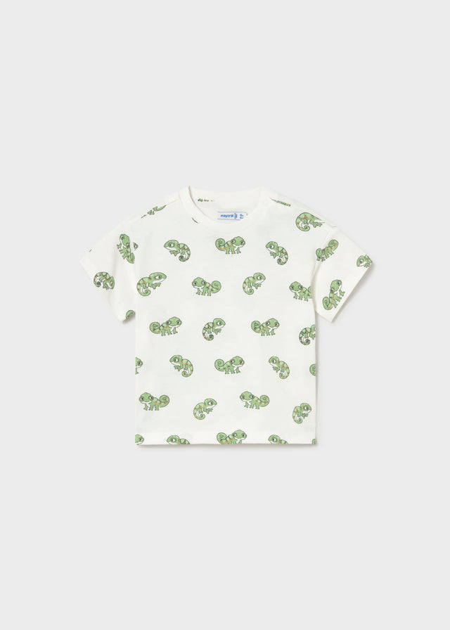 Short-sleeved T-shirt for babies. Crew neck. 100% cotton fabric. Decorative elements: Screen printing. Summer print. By choosing our cotton products, you support our commitment to the Better Cotton initiative.