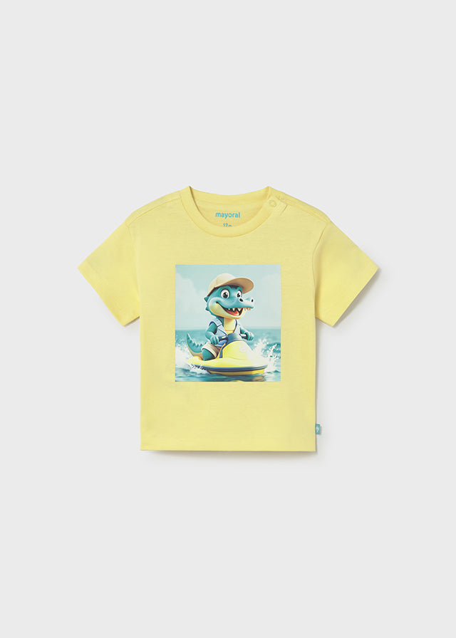Short-sleeved T-shirt for babies. Crew neck. 100% cotton fabric. Decorative elements: Screen printing. Summer print. By choosing our cotton products, you support our commitment to the Better Cotton initiative.