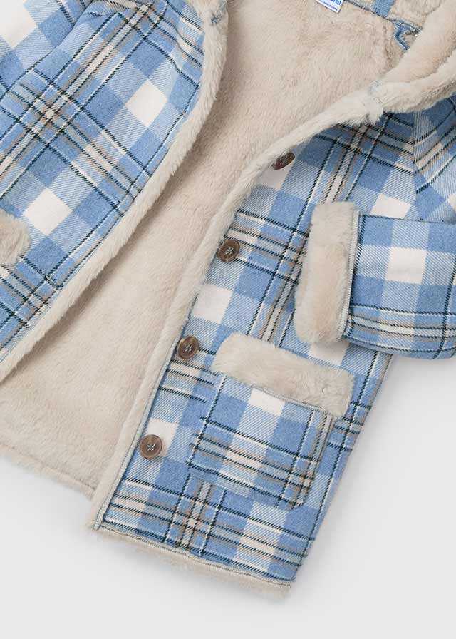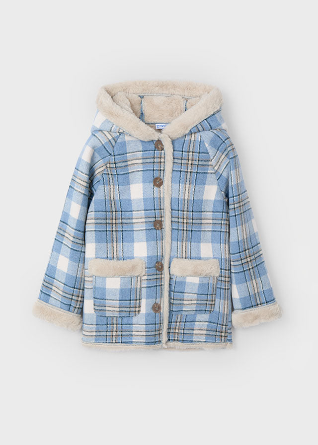 Capotto con cappuccio bambina Mayoral quadri celeste e panna