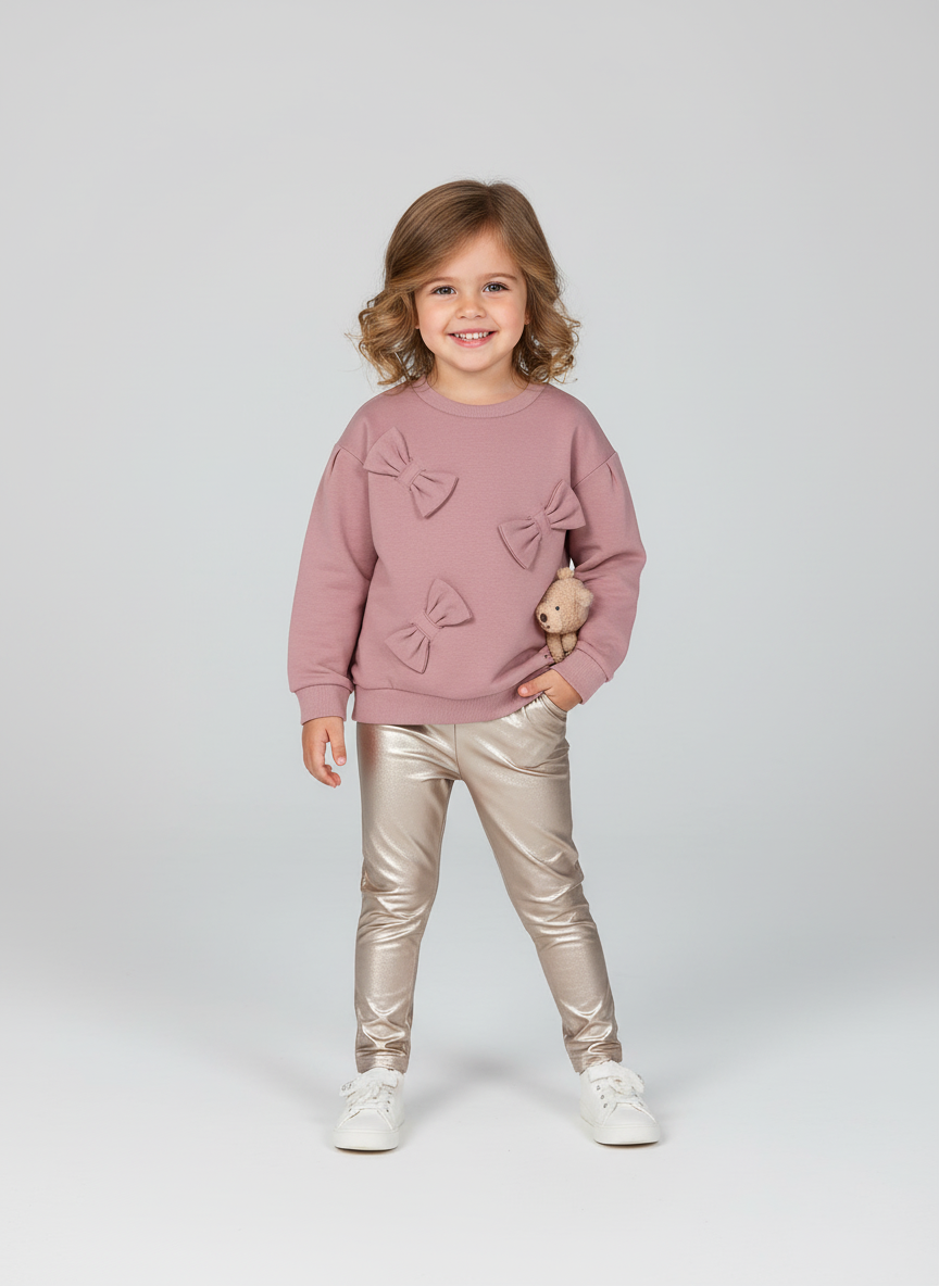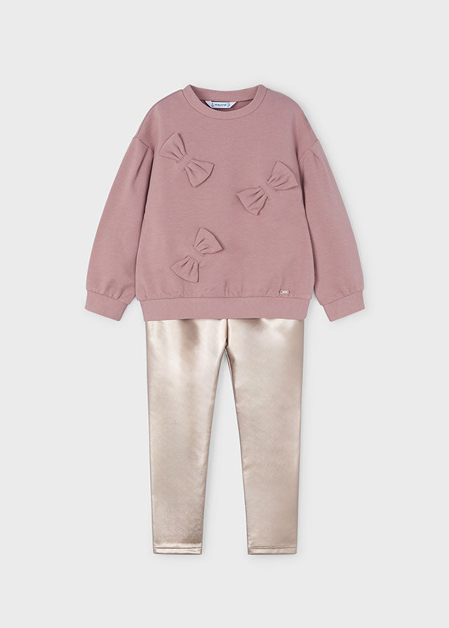 Completo leggings e felpa bambina Mayoral rosa fiocchi
