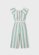 Completo pantalone e maglietta righe bambina Mayoral giada e beige