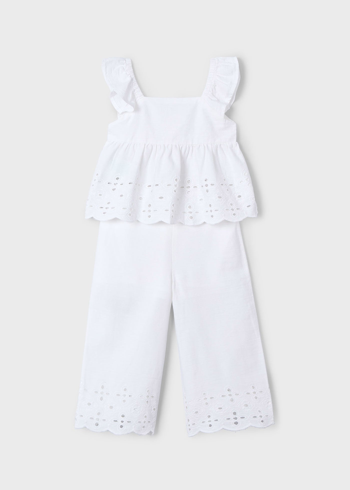 Completo pantalone e top traforato bambina Mayoral bianco