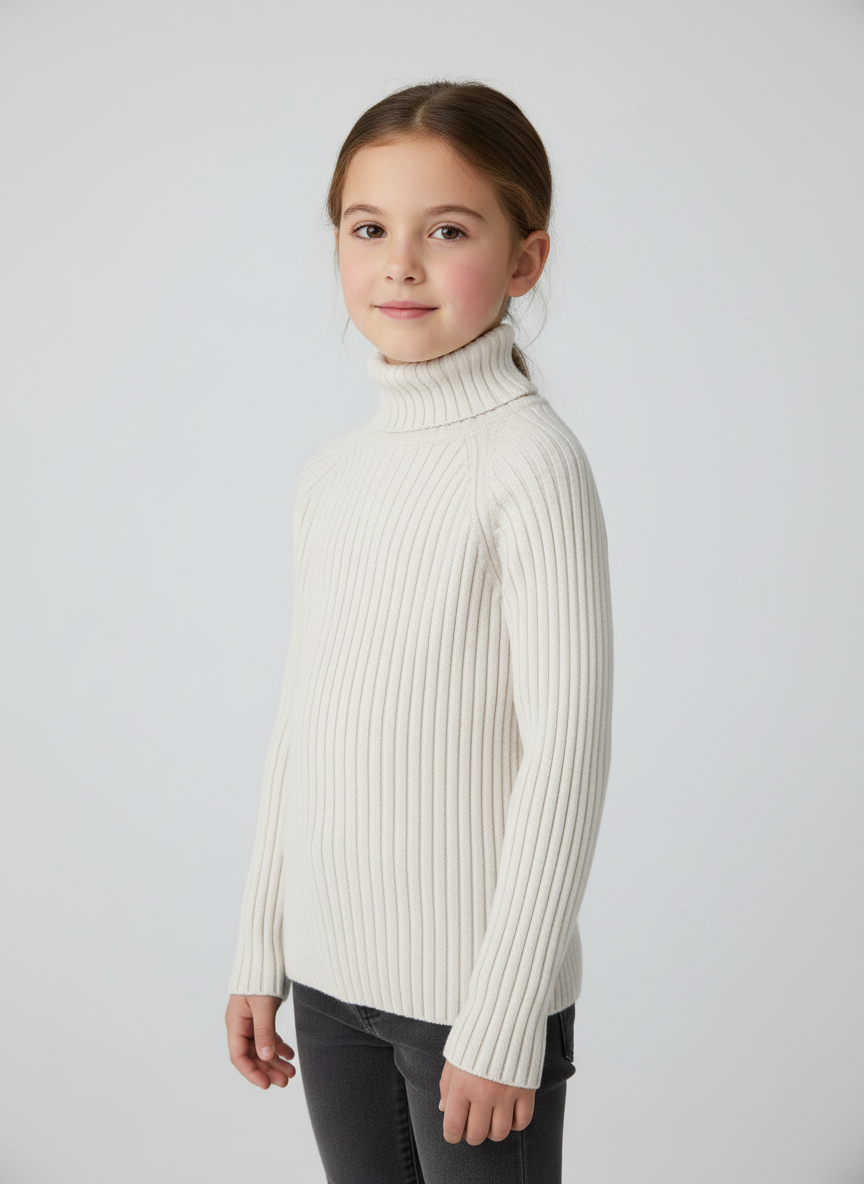 Mayoral Girls Ribbed Turtleneck T-Shirt Blue Stripes