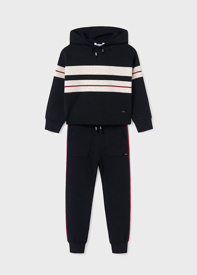 Tuta in maglia ragazza Mayoral nera fantasia riga